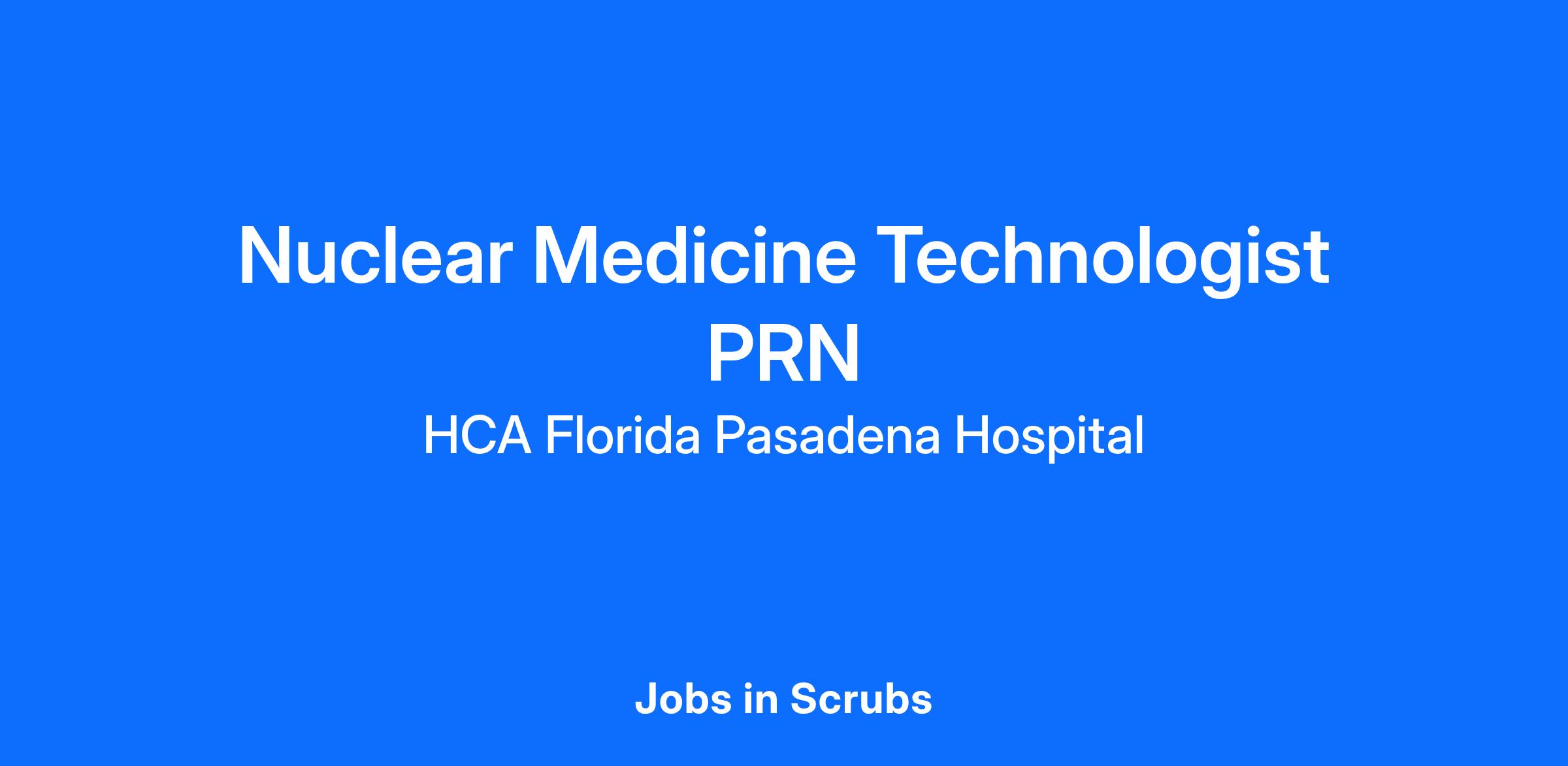 Are you passionate about the patient experience? At HCA Healthcare, we are committed to caring for patients with purpose and integrity. We care like family! Build your career as a Nuclear Medicine Technologist PRN today with HCA Florida Pasadena Hospital.