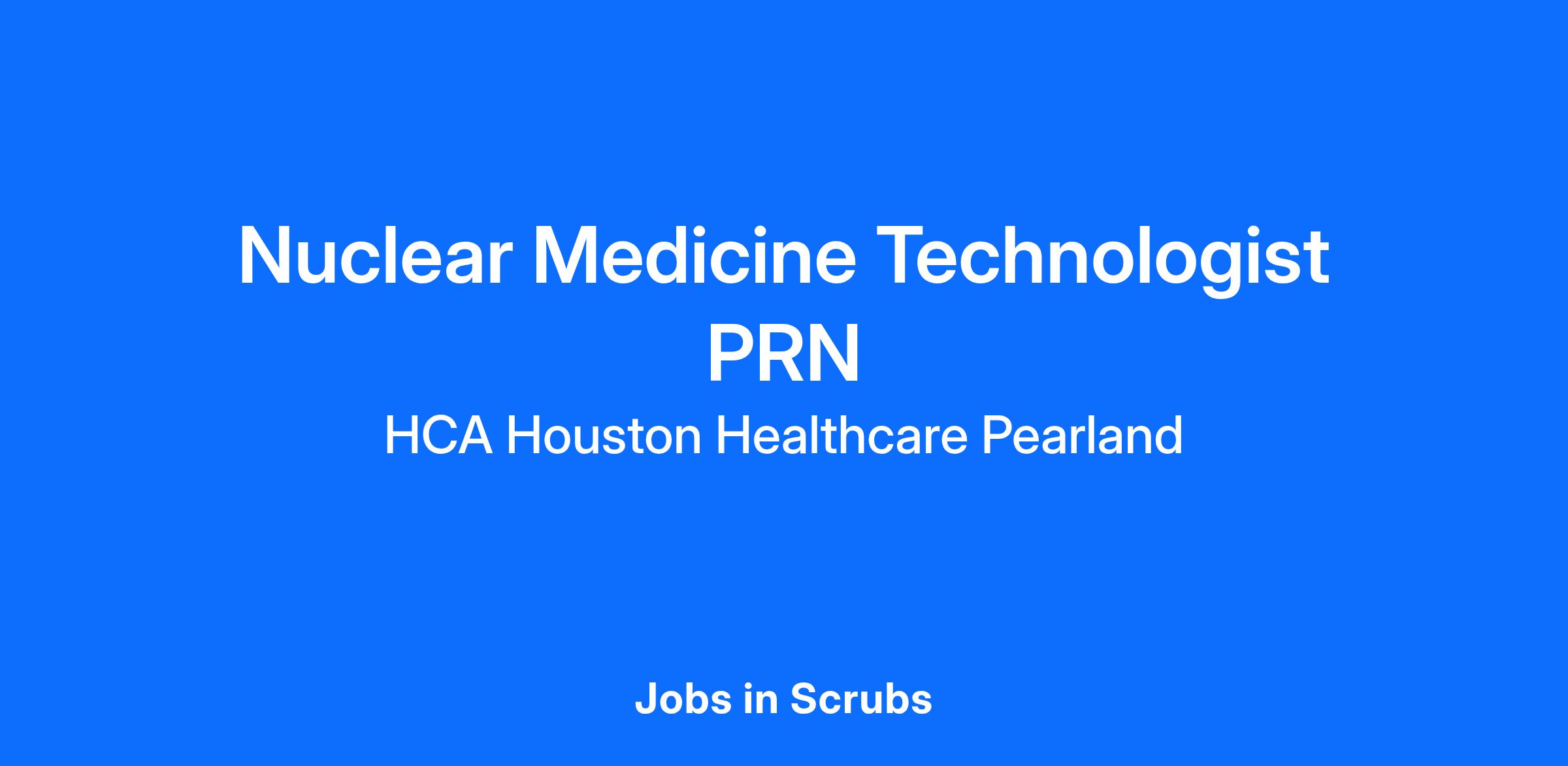 Experience the HCA Healthcare difference where colleagues are trusted, valued members of our healthcare team. Grow your career with an organization committed to delivering respectful, compassionate care, and where the unique and intrinsic worth of each individual is recognized. Submit your application for our Nuclear Medicine Technologist PRN opening with HCA Houston Healthcare Pearland today and find out what it truly means to be a part of the HCA Healthcare team.