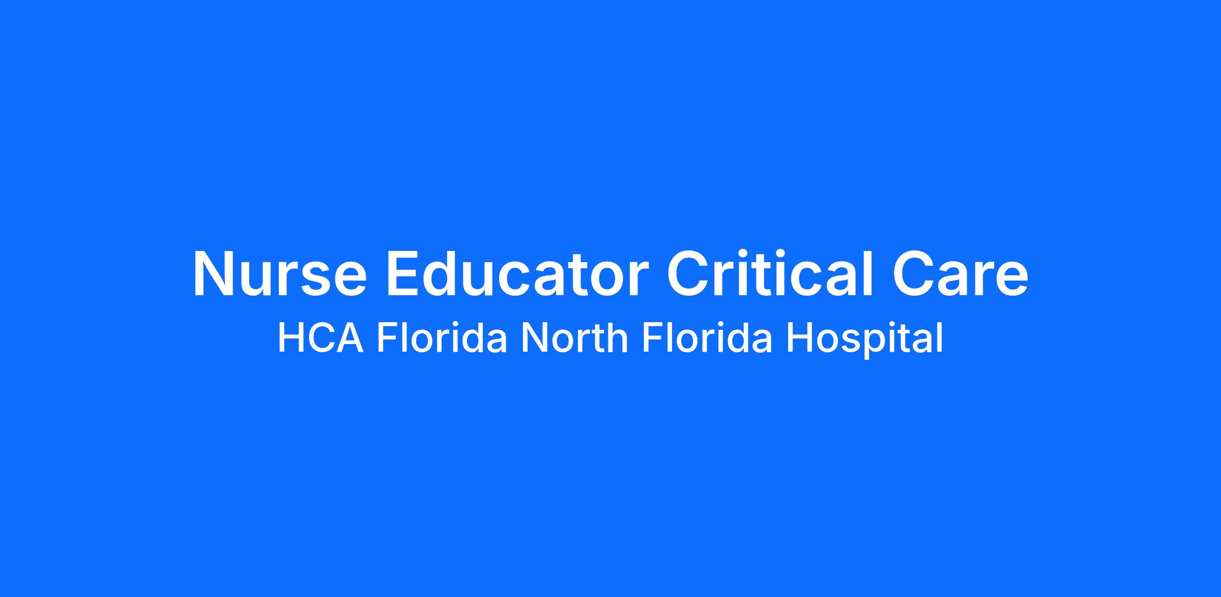 Are you looking for a place to deliver excellent care patients deserve? At HCA Florida North Florida Hospital we support our colleagues in their positions. Join our Team as a Nurse Educator Critical Care and access programs to assist with every stage of your career.