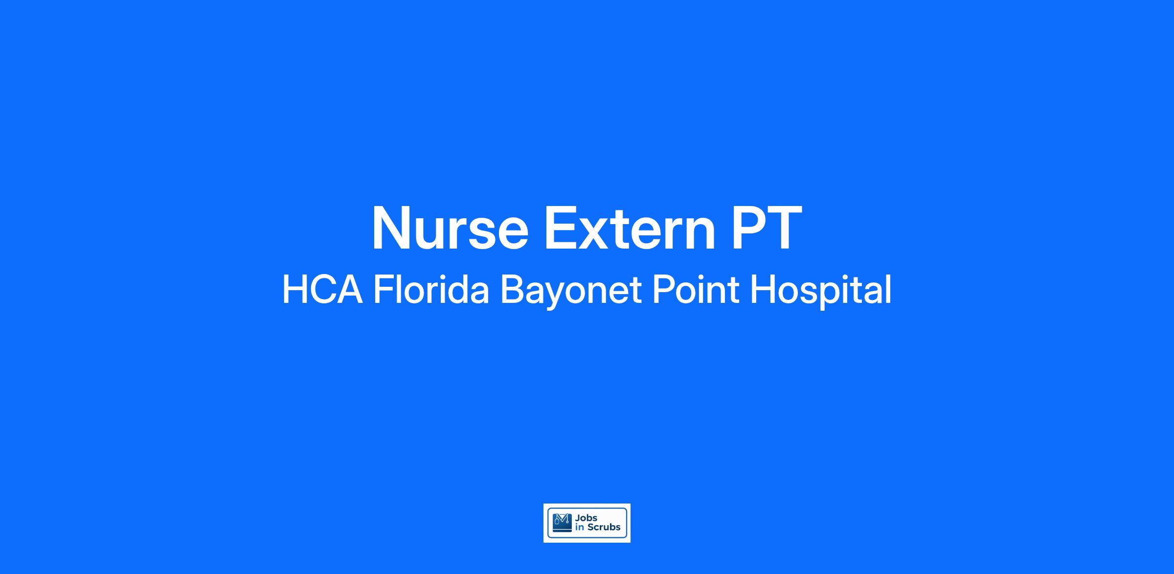 Experience the HCA Healthcare difference where colleagues are trusted, valued members of our healthcare team. Grow your career with an organization committed to delivering respectful, compassionate care, and where the unique and intrinsic worth of each individual is recognized. Submit your application for the opportunity below:Nurse ExternHCA Florida Bayonet Point Hospital