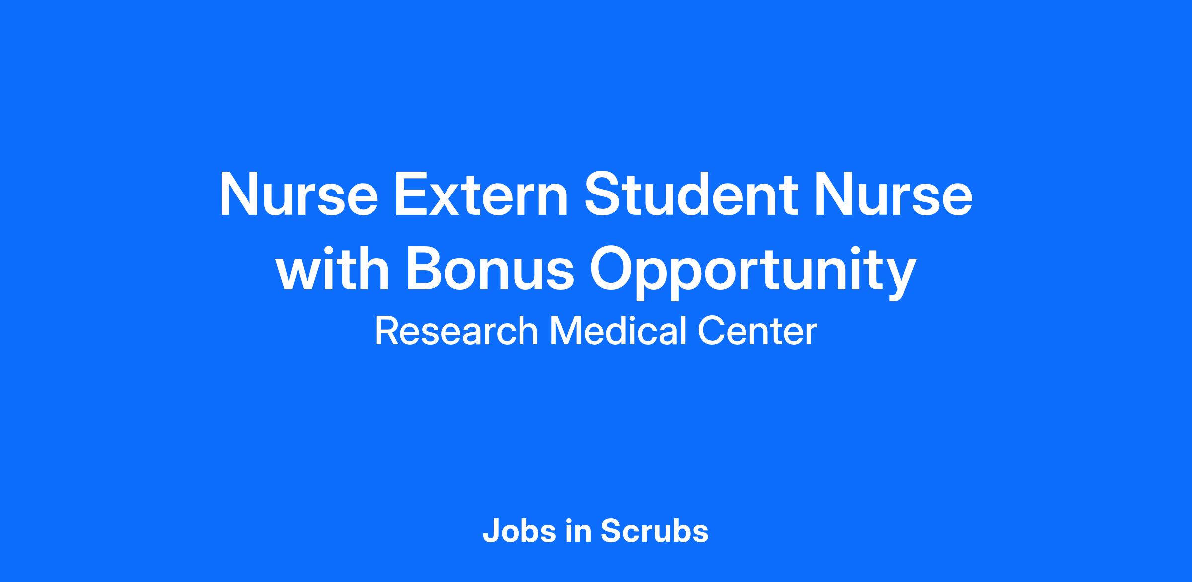 Our Brand New Nurse Extern Bonus Potential role has limited spots at the following facilities: Belton Regional Medical Center, Centerpoint Medical Center, Menorah Medical Center, and Overland Park Regional Medical Center