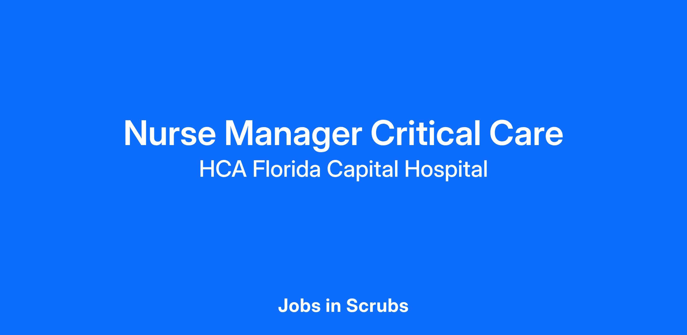 Want to join a team of daring managers who care without reservations or limits? Our HCA Florida Capital Hospital team is looking for a(an) Nurse Manager Critical Care. HCA Healthcare is an advanced healthcare network that has committed up to $300 million to our incredible team members over the course of three years.