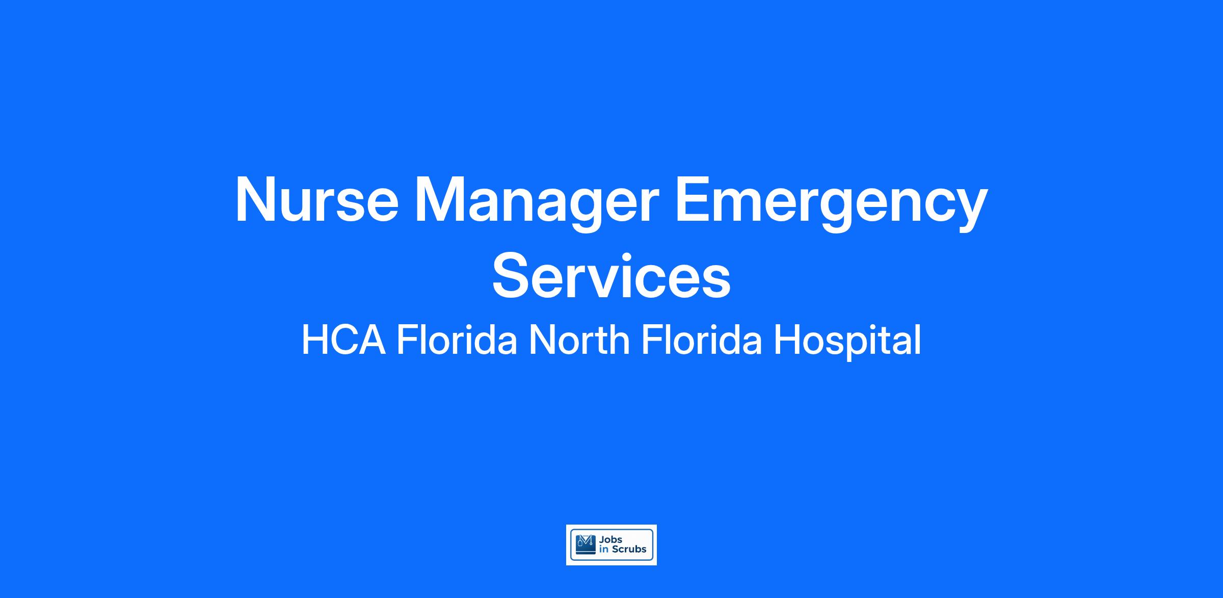 Become a manager with an organization that invests in your career while giving to the community. We are seeking distinguished applicants for our Nurse Manager Emergency Services opening. Help HCA Healthcare create healthier tomorrows for patients and communities.