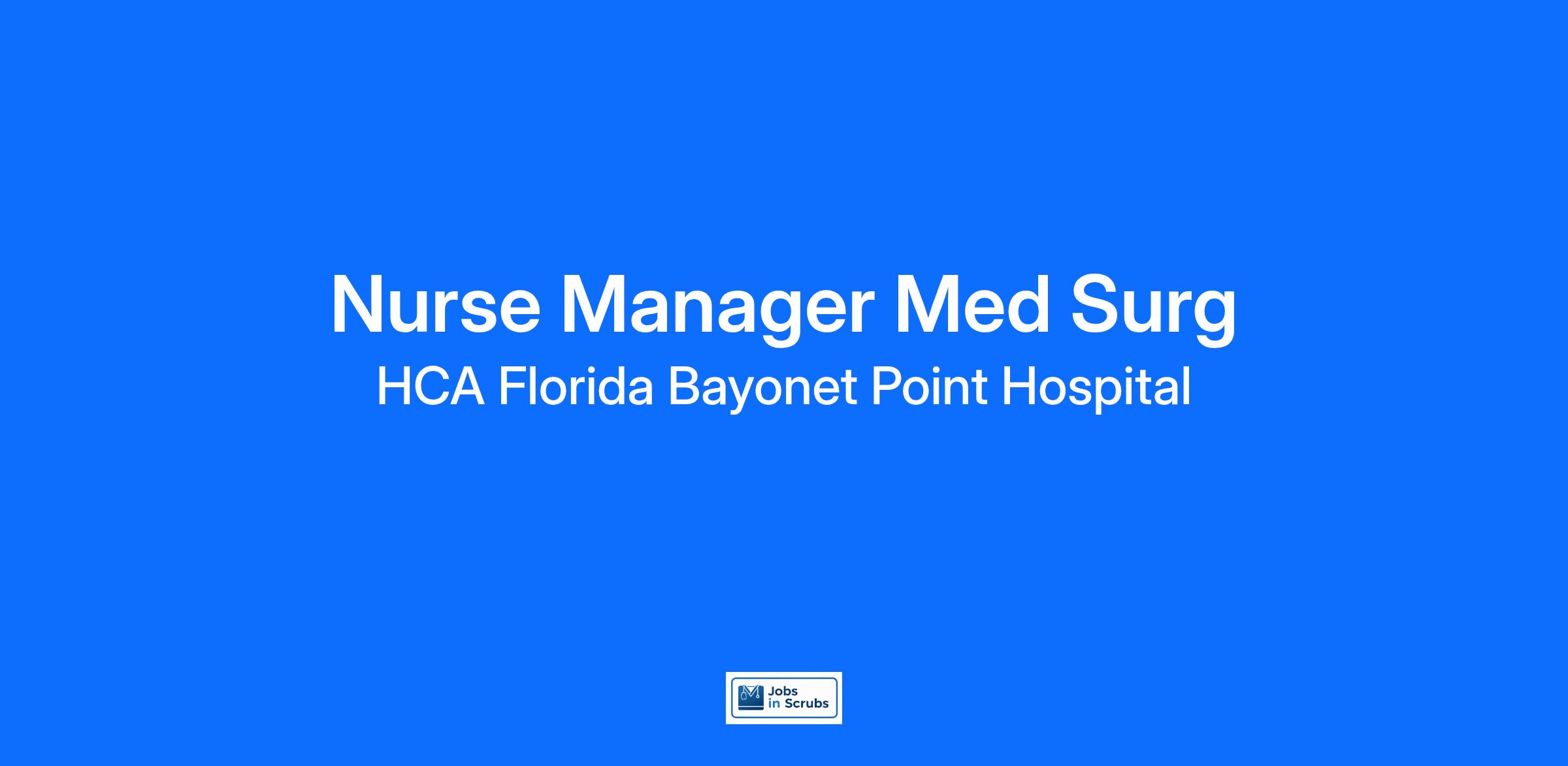 Managers thrive with us! HCA Healthcare is one of the nation’s leading providers of healthcare services, comprising of over 180 hospitals and about 2,000 sites of care in 21 states and the United Kingdom. We are looking for a Nurse Manager Med Surg for our HCA Florida Bayonet Point Hospital team where excellence creates excellence.