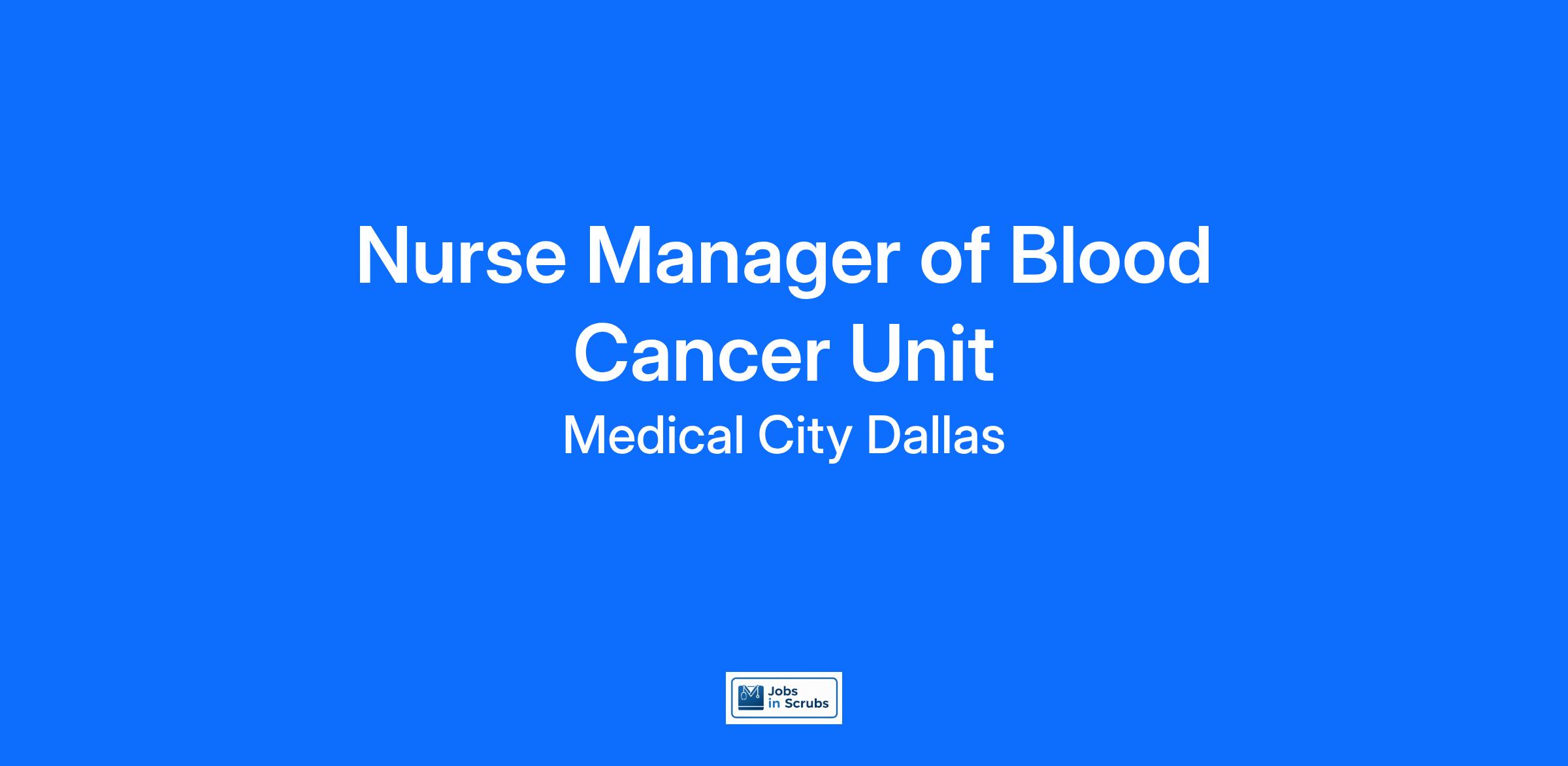 Become a manager with an organization that invests in your career while giving to the community. We are seeking distinguished applicants for our Nurse Manager of Blood Cancer Unit opening. Help HCA Healthcare create healthier tomorrows for patients and communities.