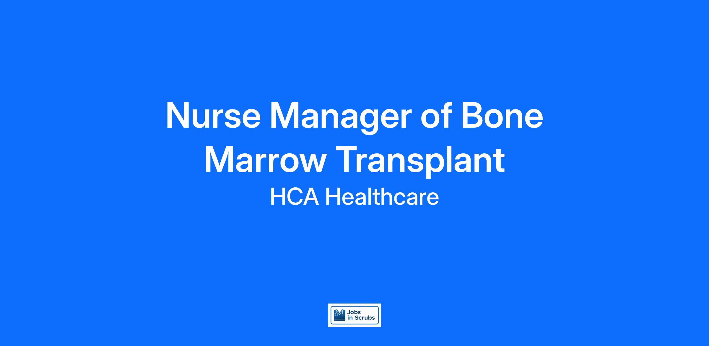 Do you want to join an organization that invests in you as a(an) Nurse Manager of Bone Marrow Transplant? At Methodist Hospital, you come first. HCA Healthcare has committed up to $300 million in programs to support our incredible team members over the course of three years.