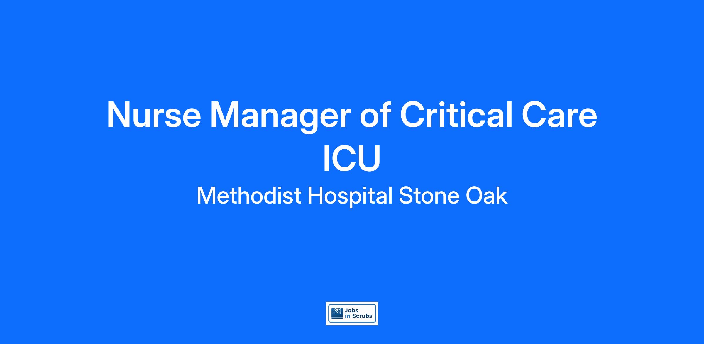 Do you want to join an organization that invests in you as a(an) Nurse Manager of Critical Care ICU? At Methodist Hospital Stone Oak, you come first. HCA Healthcare has committed up to $300 million in programs to support our incredible team members over the course of three years.