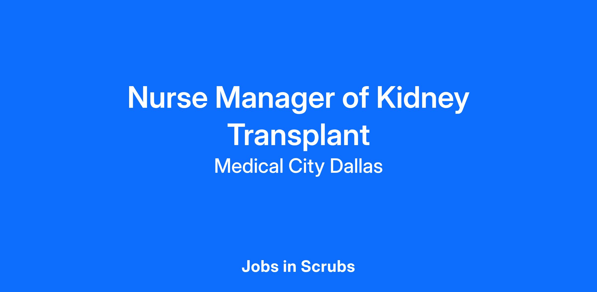 We are seeking a Nurse Manager of Kidney Transplant with Medical City Dallas to promote growth and unlock possibilities. At HCA Healthcare, we are committed to the care and improvement of human life. Share your leadership skills and come make a difference with us!
