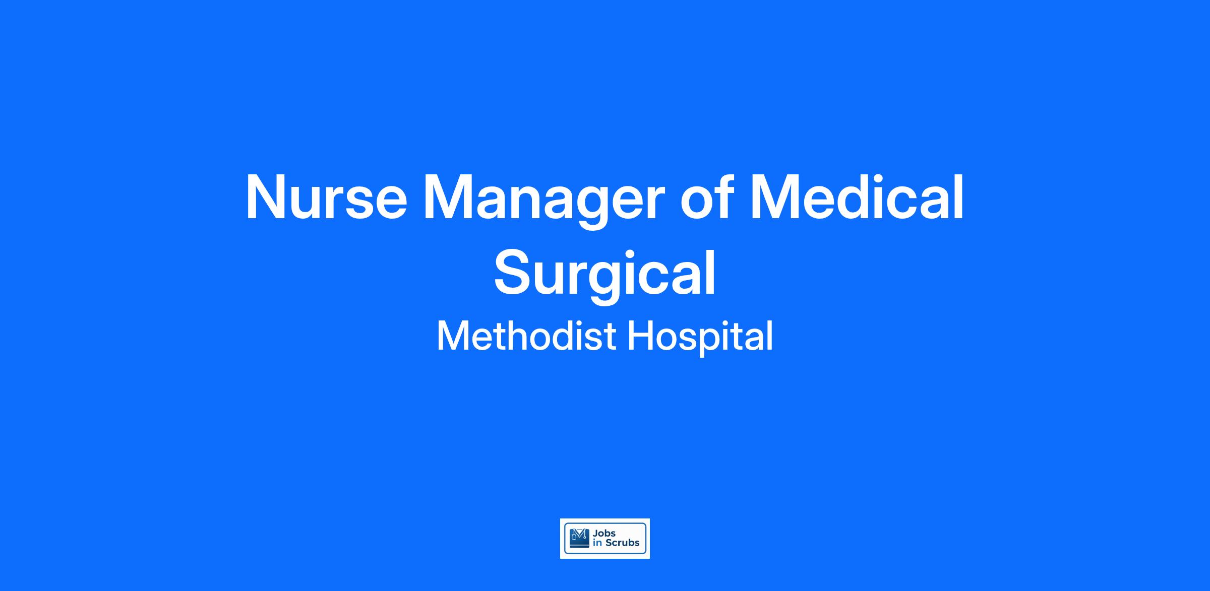 Are you passionate about the patient experience? At HCA Healthcare, we are committed to caring for patients with purpose and integrity. We care like family! Jump-start your career as a(an) Nurse Manager of Medical Surgical today with Methodist Hospital.