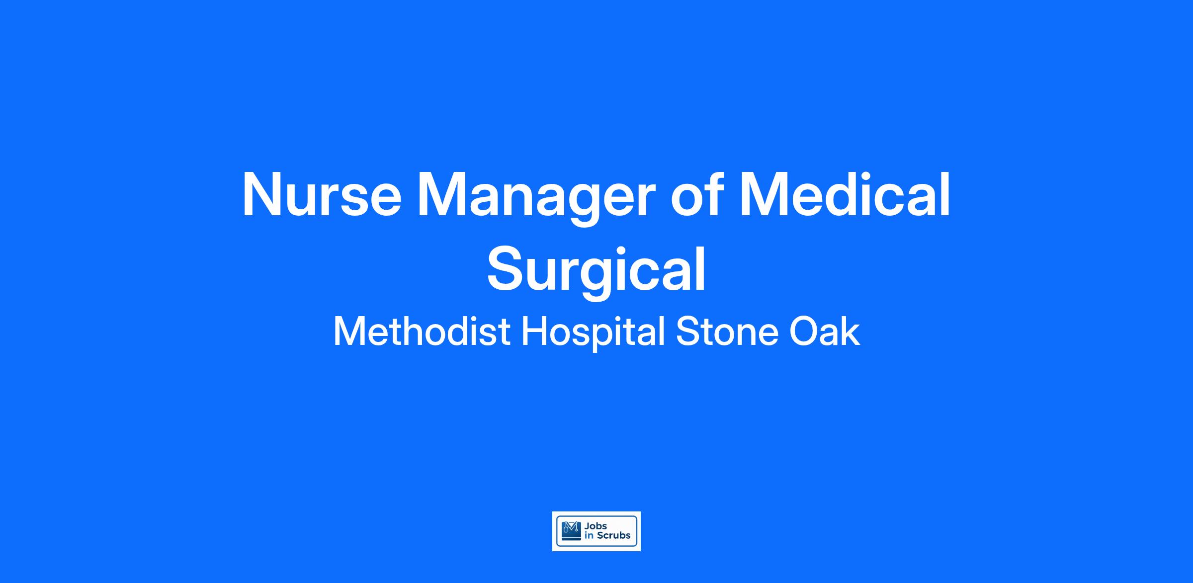 Do you have the career opportunities as a(an) Nurse Manager of Medical Surgical you want with your current employer? We have an exciting opportunity for you to join Methodist Hospital Stone Oak which is part of the nation's leading provider of healthcare services, HCA Healthcare.
