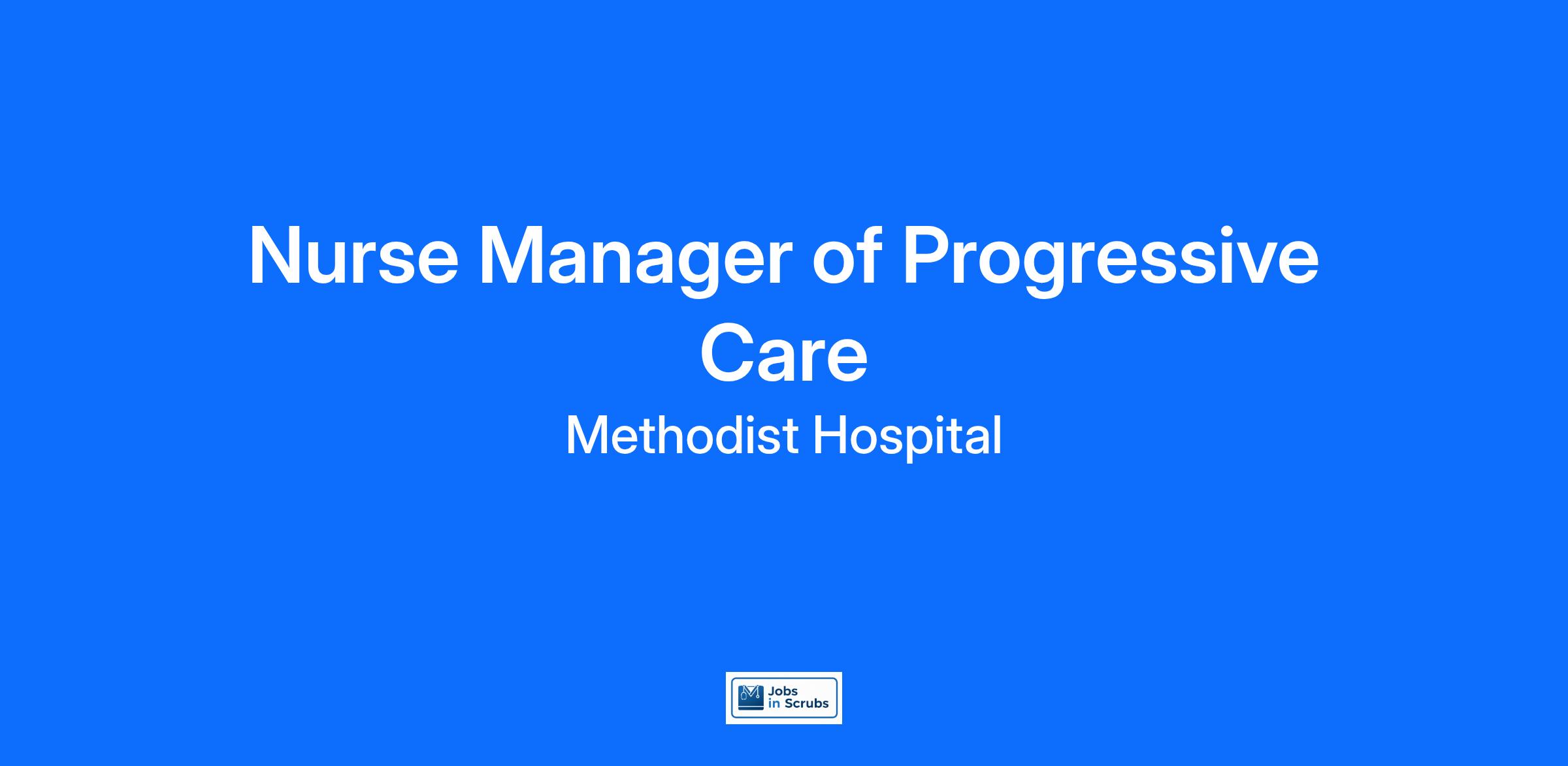 Do you have the career opportunities as a(an) Nurse Manager of Progressive Care you want with your current employer? We have an exciting opportunity for you to join Methodist Hospital which is part of the nation's leading provider of healthcare services, HCA Healthcare.