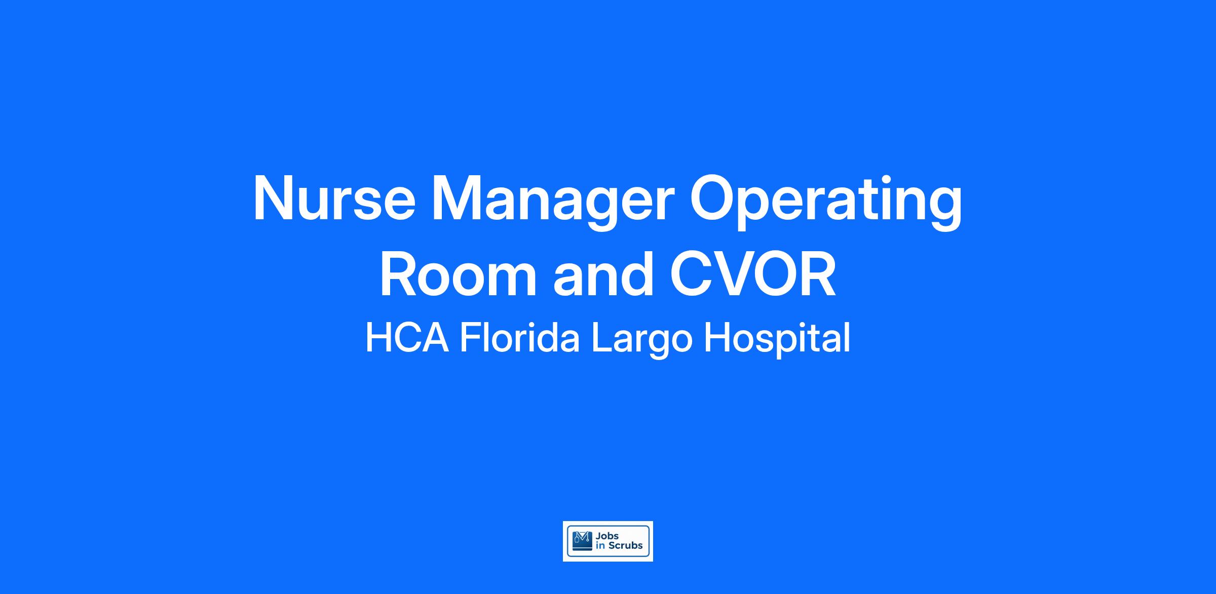 We are seeking a Nurse Manager Operating Room and CVOR with HCA Florida Largo Hospital to promote growth and unlock possibilities. At HCA Healthcare, we are committed to the care and improvement of human life. Share your leadership skills and come make a difference with us!