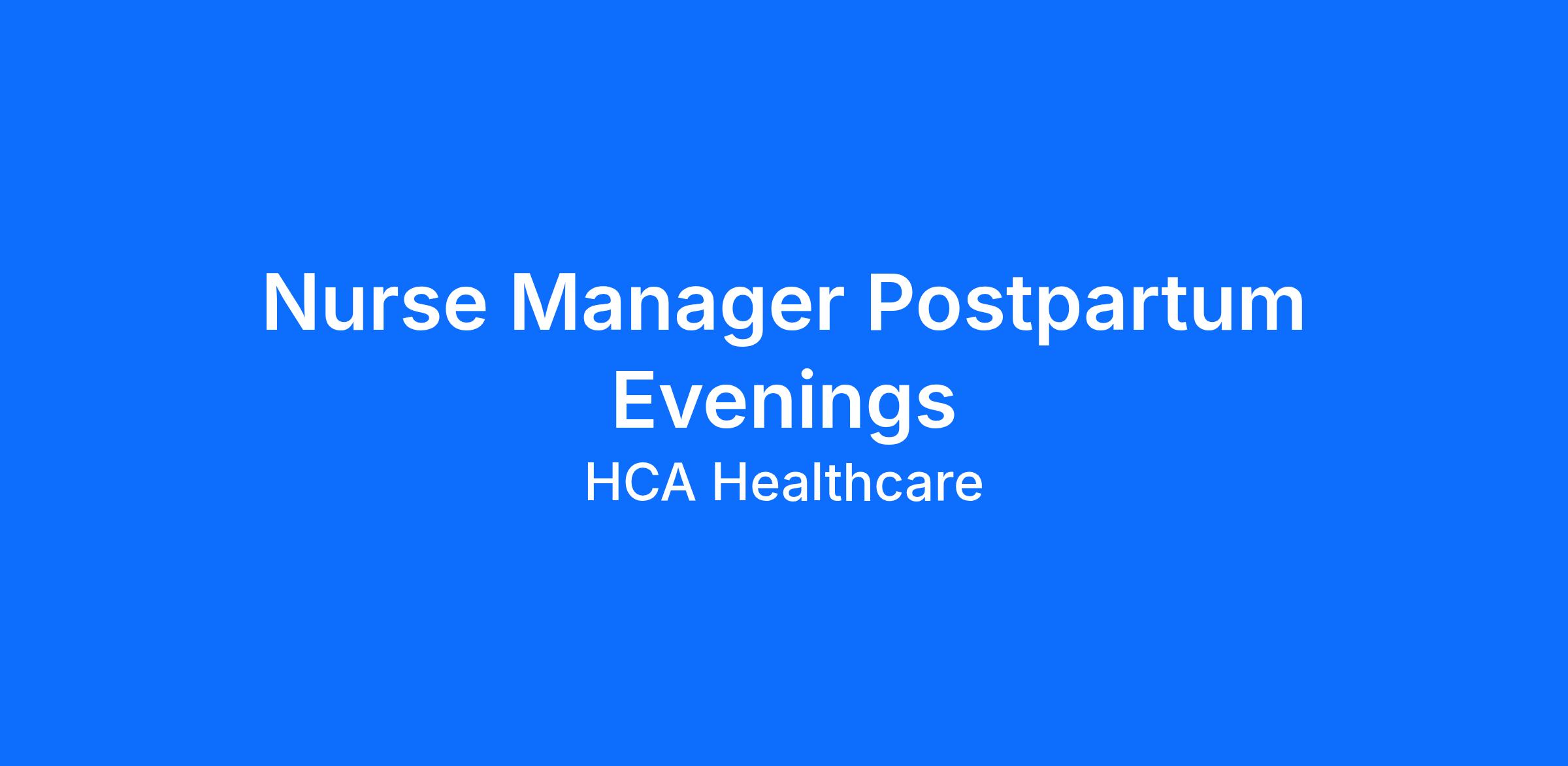 Our teams are dedicated to improving human life. Each year about five percent of all U.S. hospital services happen at an HCA Healthcare facility. Be an impact as a(an) Postpartum Manager RN Evenings where your passion for leading and creativity are valued? We want your knowledge and expertise!