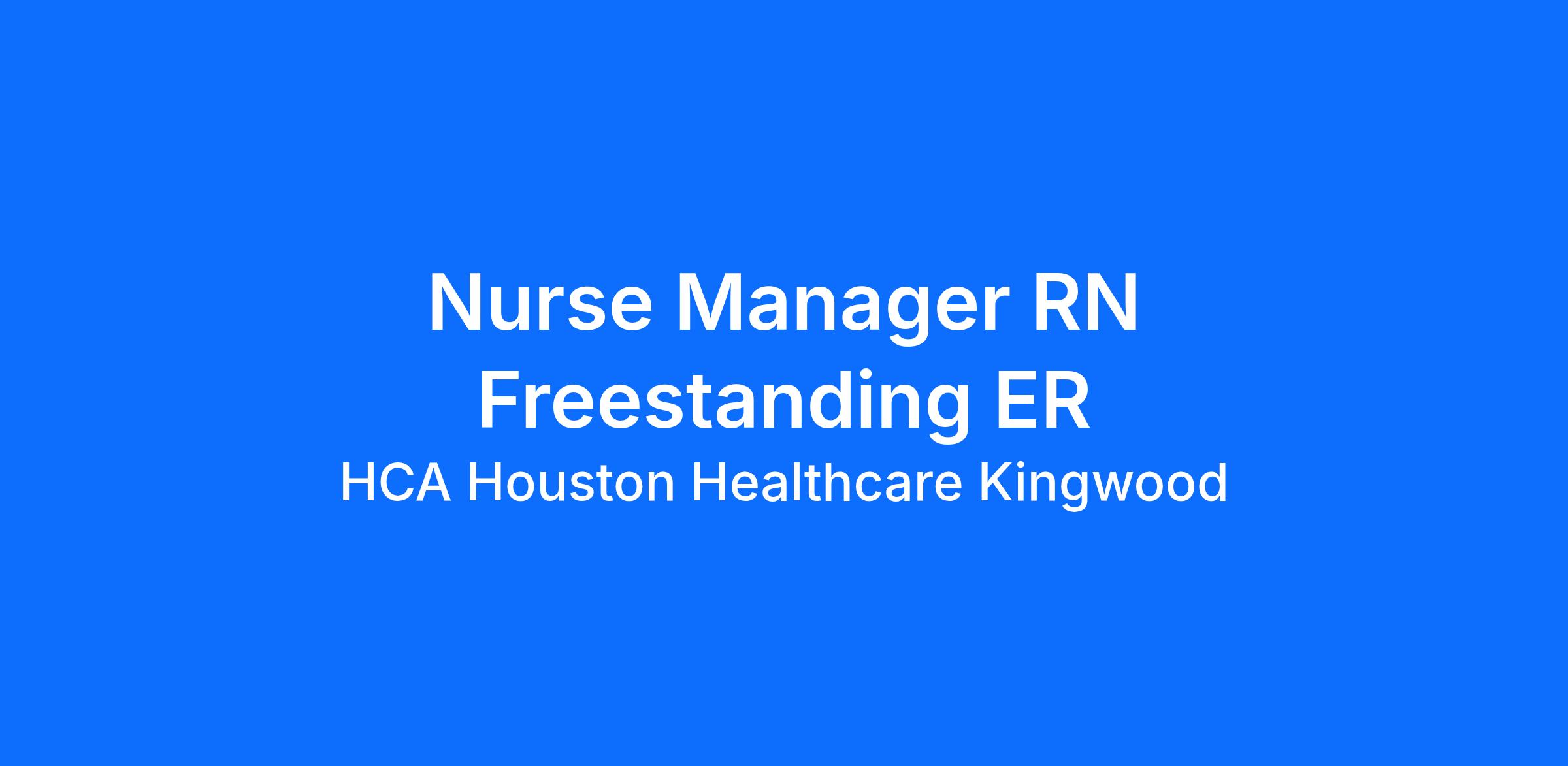 Do you have the career opportunities as a Registered Nurse Manager Freestanding ER you want in your current role? We invest in what matters most to nurses like you – at home, at work, and at every stage in your career. We have an exciting opportunity for you to join HCA Houston Healthcare Kingwood which is a part of the nation’s leading provider of healthcare services, HCA Healthcare.