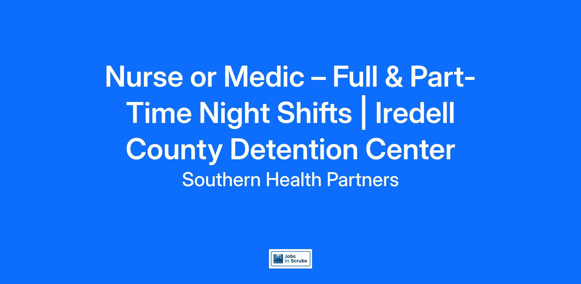 Nurse or Medic – Full & Part-Time Night Shifts | Iredell County Detention Center