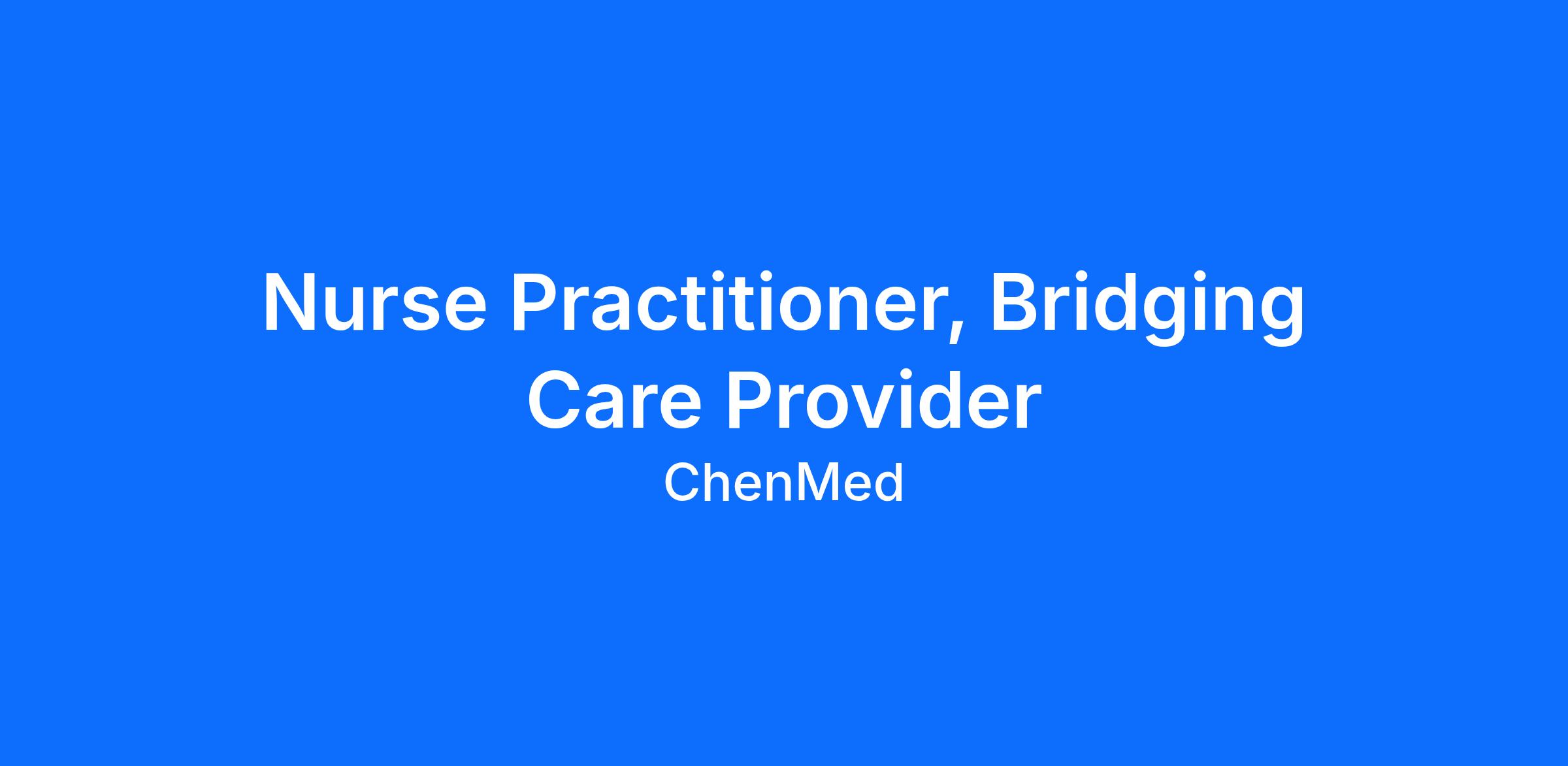 The Nurse Practitioner, Bridging Care Provider (NP) acts as part of the clinical operations team and is responsible for providing direct patientIn collaboration with the Regional Chief Clinical Officer (RCCO), train new PCPs in a market on using our technology/ EMR