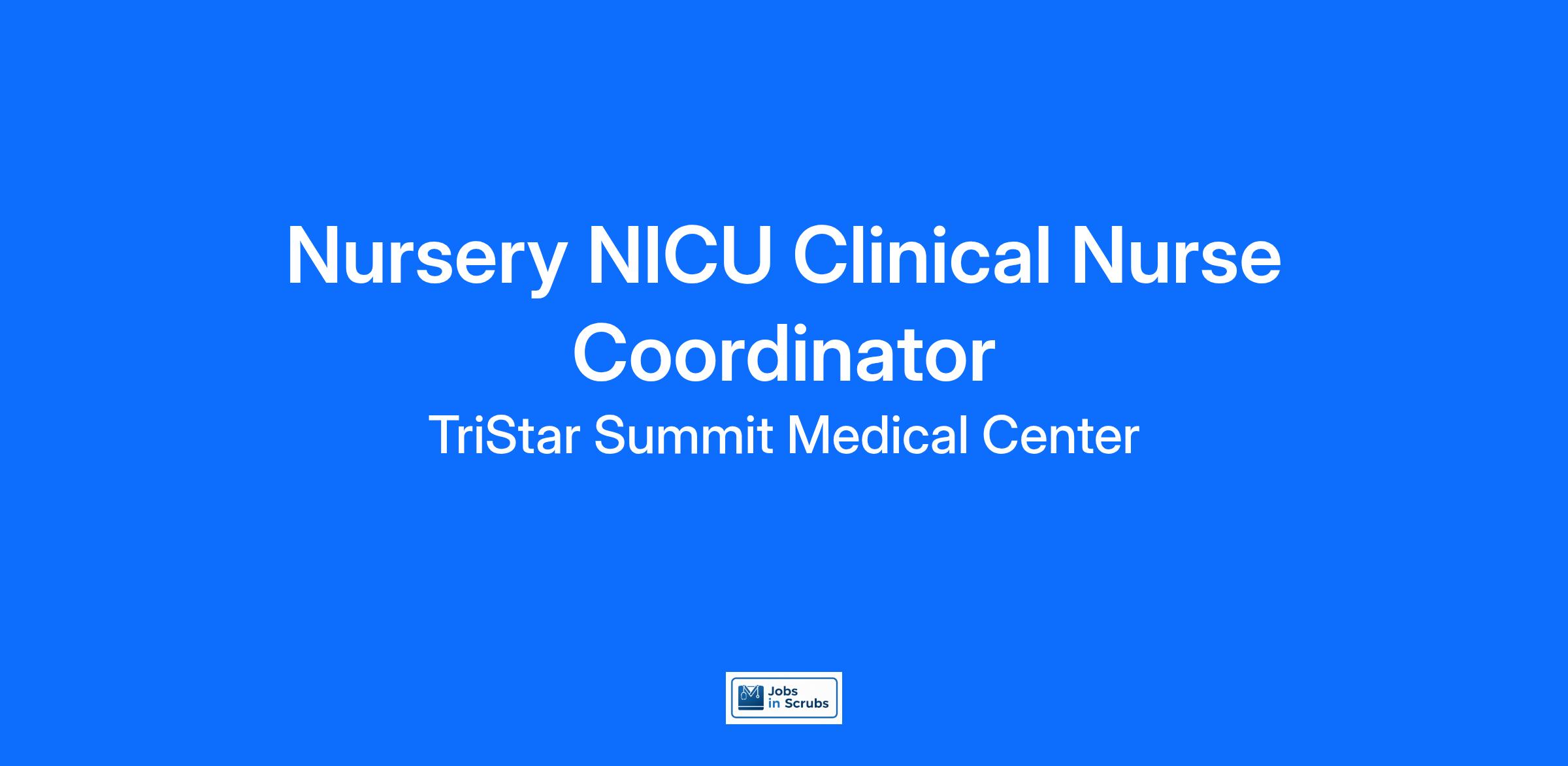 Do you currently have an opportunity to make a real impact with your work? With over 2,000 sites of care and serving over 31.2 million patient interactions every year, nurses at TriStar Summit Medical Center have the opportunity to make a real impact. As a(an) Nursery NICU Clinical Nurse Coordinator you can be a part of change.