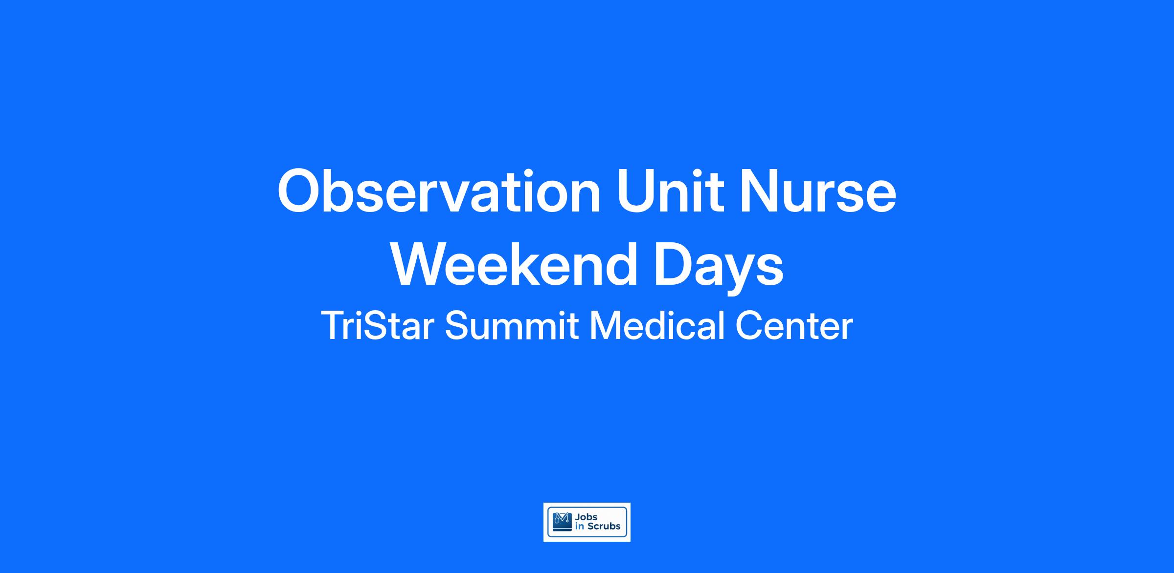 TriStar Summit Medical Center is committed to investing in the latest technology enabling nurses to work more efficiently. Are you passionate about delivering patient-centered care? Submit your application for Observation Unit Nurse Weekend Days position and spend more time at the bedside with the patient.