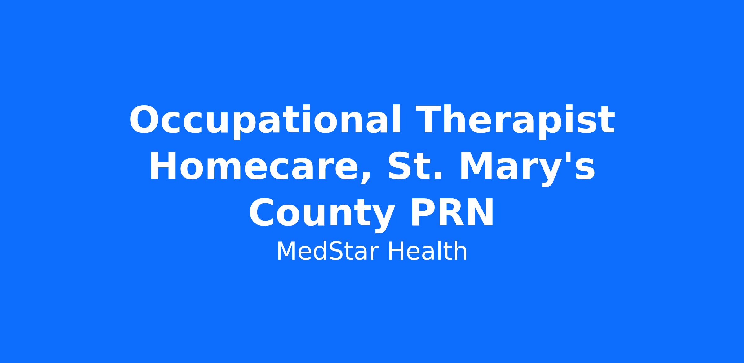 • Health Services\OT - Occupational Therapist - Registered License to practice Occupational Therapy in the District of Columbia Maryland or Virginia or any combination based on work location(s) Upon Hire required and