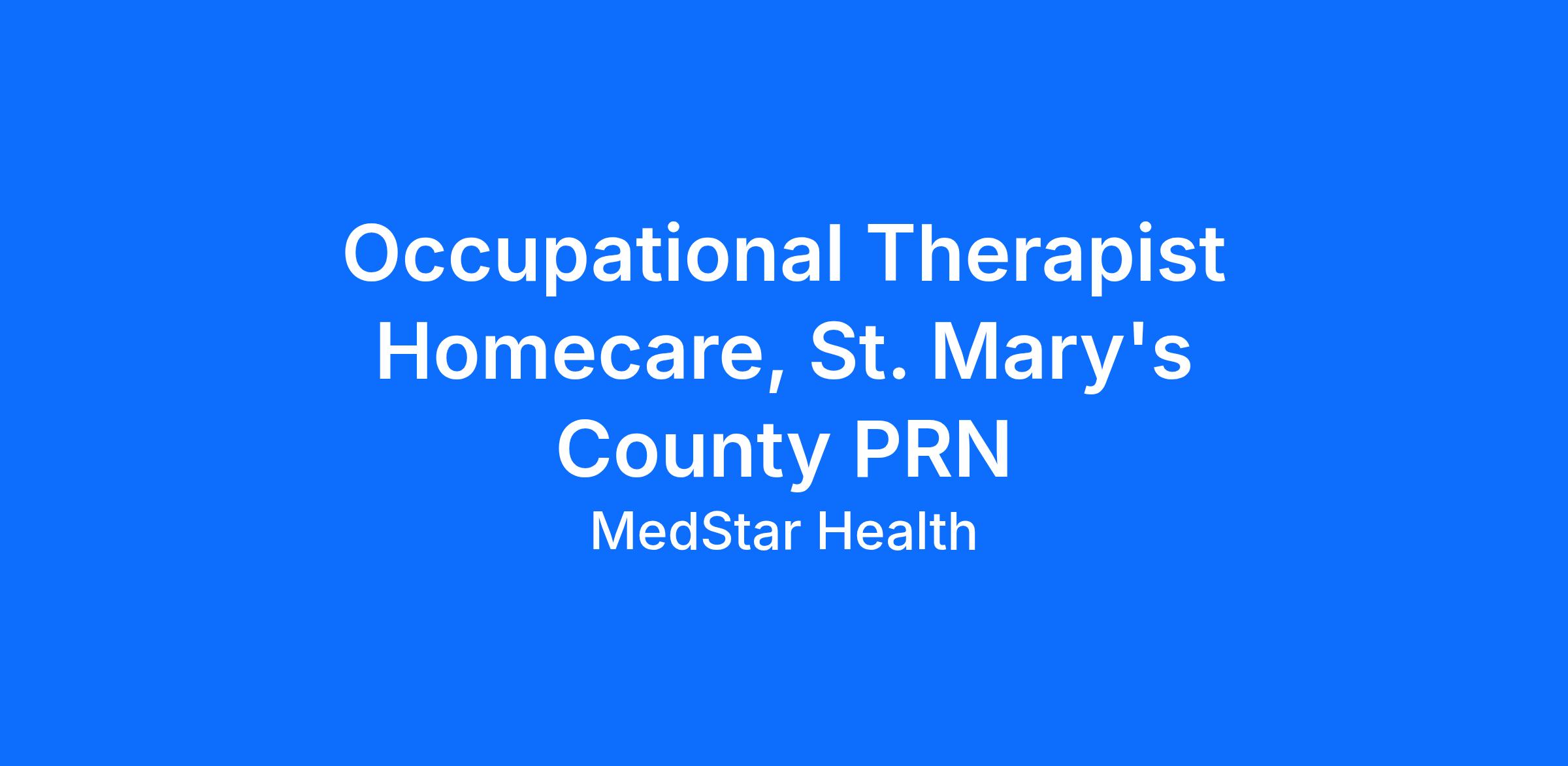 General Summary of PositionProvides evaluation and occupational therapy treatment in accordance with agency standards the laws and regulations governing the provision of occupational therapy services in the State of Maryland District of Columbia or Virginia and other regulatory requirements.