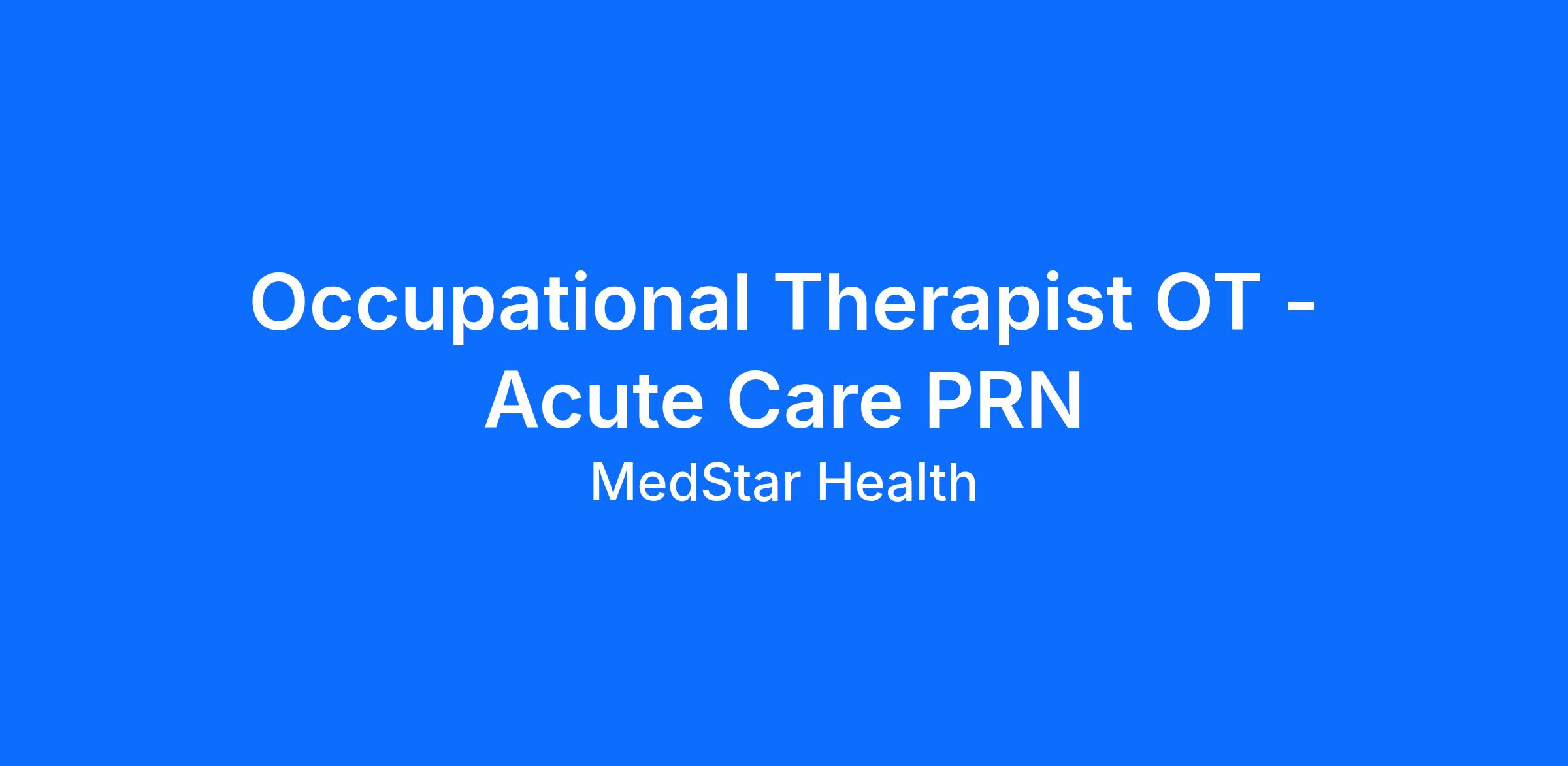 MedStar Health is looking for an Occupational Therapist (PRN) to join our team at MedStar Franklin Square Medical Center!