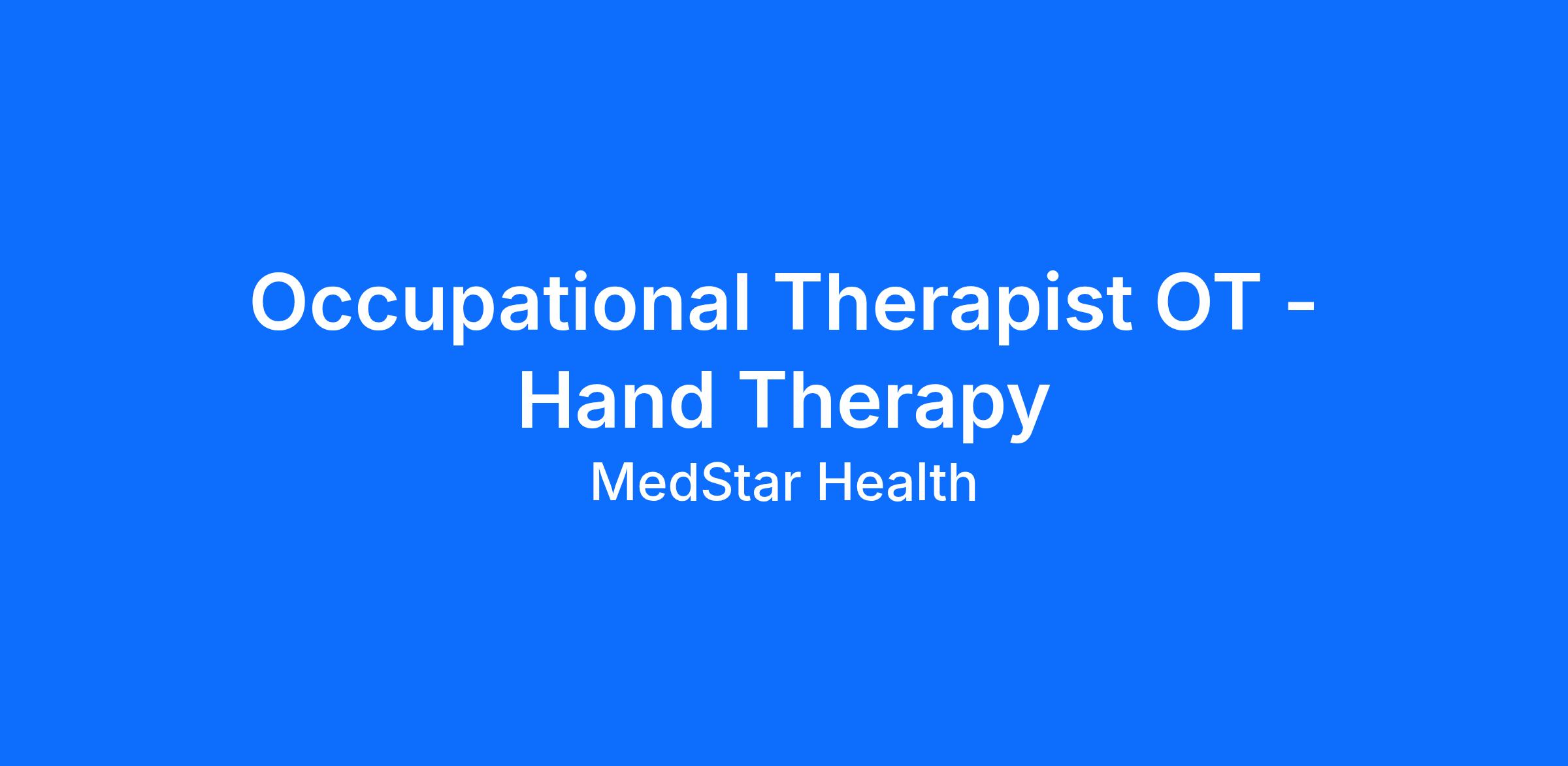 - OT - Occupational Therapist licensure in Maryland District of Columbia (DC) and/or Virginia as deemed necessary for your specific location(s) required