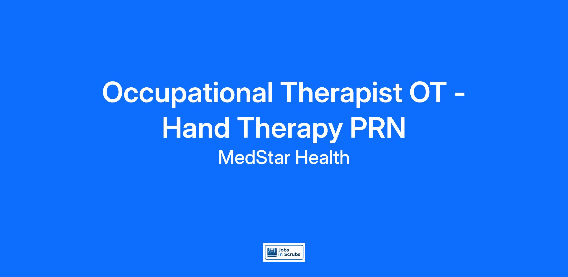 MedStar Health is looking for an Occupational Therapist to join our team at Rehab-Hand Therapy MedStar Union Memorial Hospital! We are looking for professional competency as a general practitioner in occupational therapy, independent use of varied evaluation and treatment approaches, and the ability to work in a team environment.