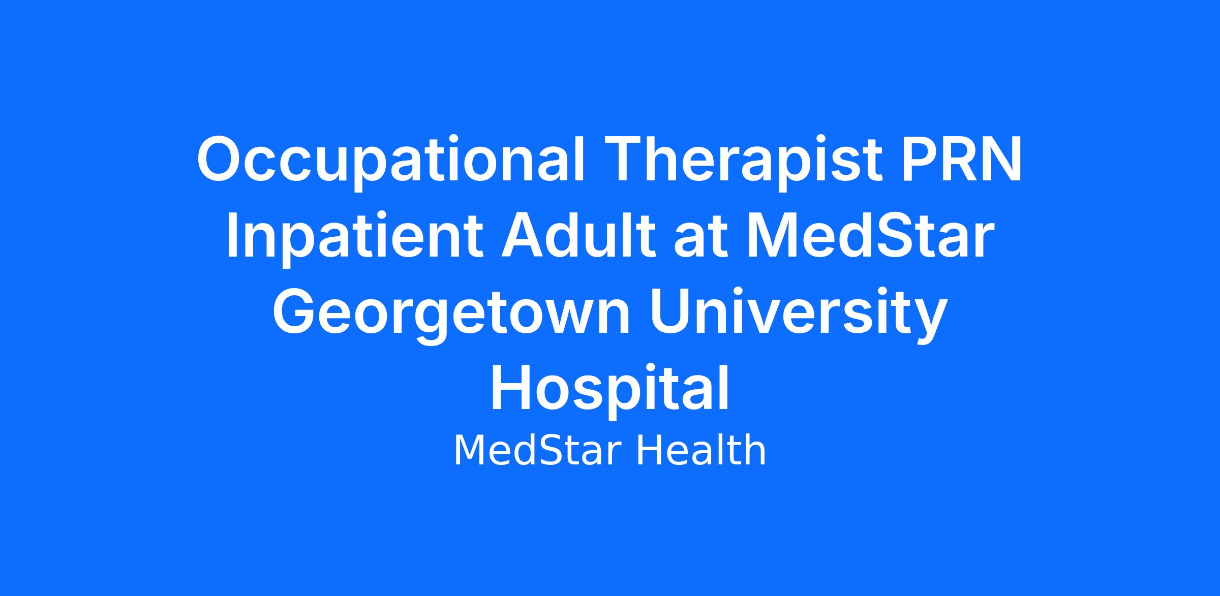 Occupational Therapist PRN Inpatient Adult at MedStar Georgetown University Hospital