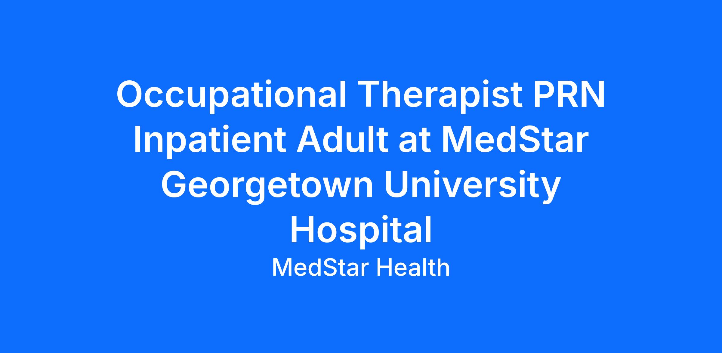 MedStar Health is looking for a PRN Occupational Therapist to join our team at MedStar Georgetown University Hospital!