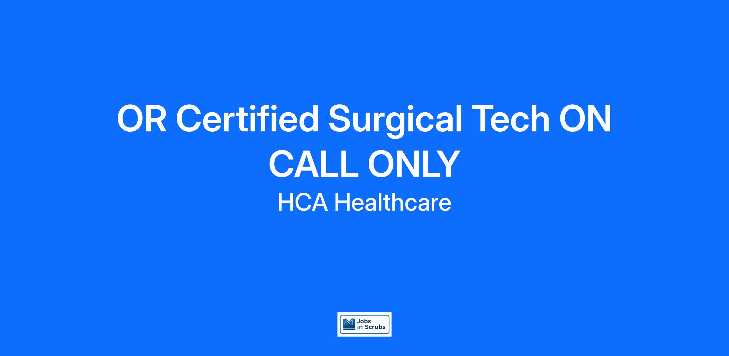 We are seeking a(an) OR Certified Surgical Tech ON CALL ONLY for our team to ensure that we continue to provide all patients with high quality, efficient care. Did you get into our industry for these reasons? We are an amazing team that works hard to support each other and are seeking a phenomenal addition like you who feels patient care is as meaningful as we do. We want you to apply!
