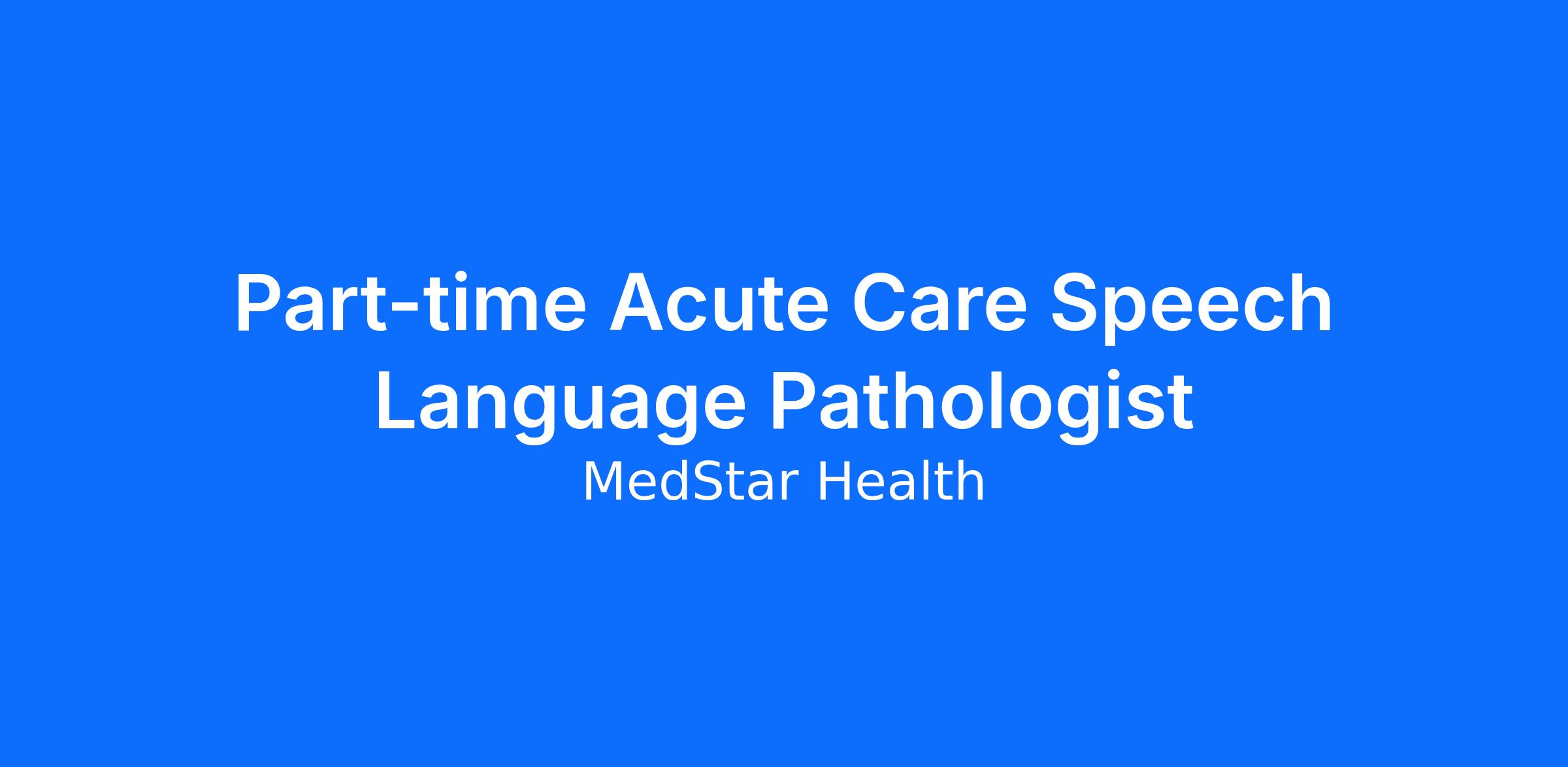 Part-time Acute Care Speech Language Pathologist