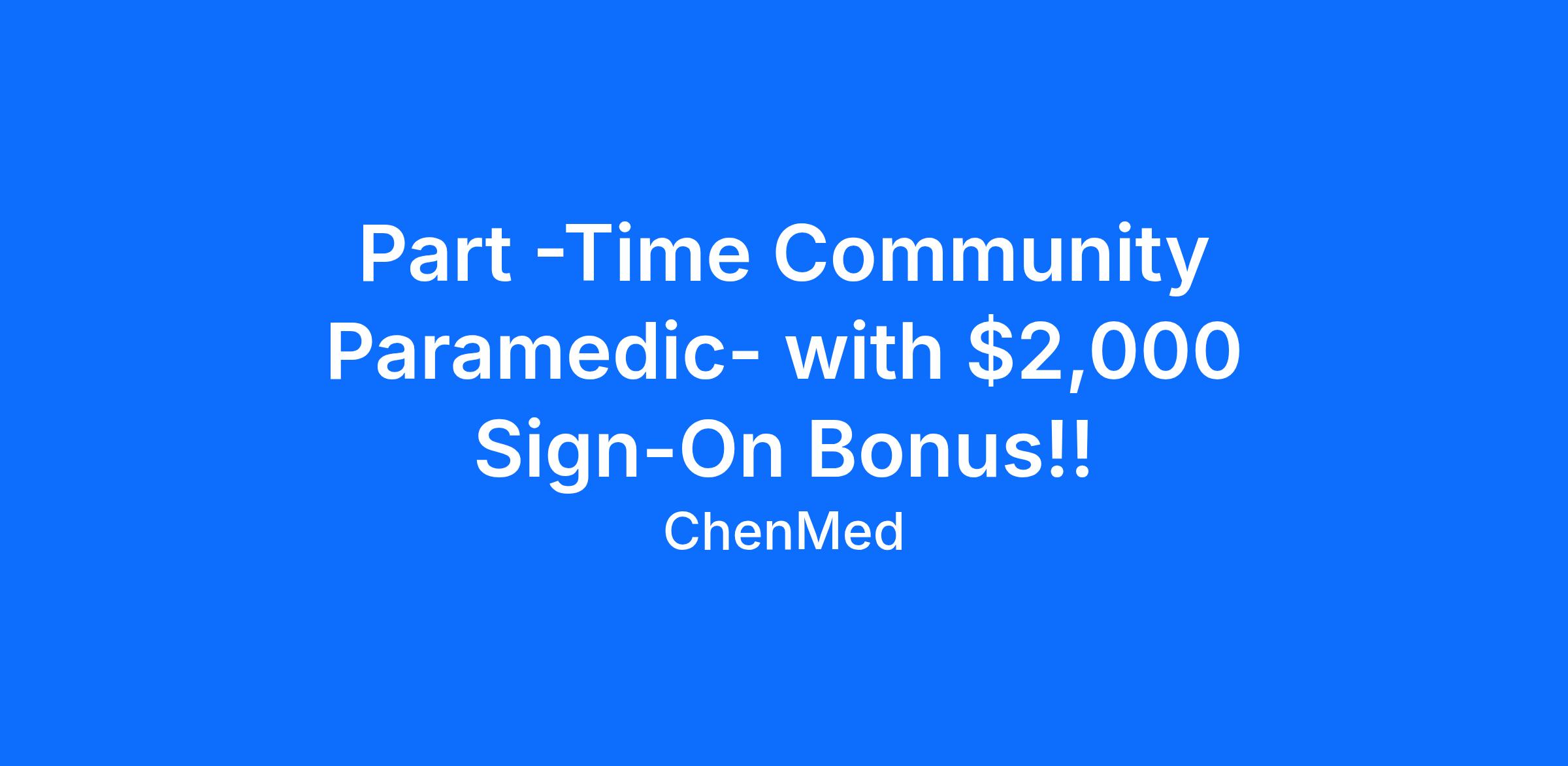 A minimum of 3 -10 years work experience as a Paramedic required.