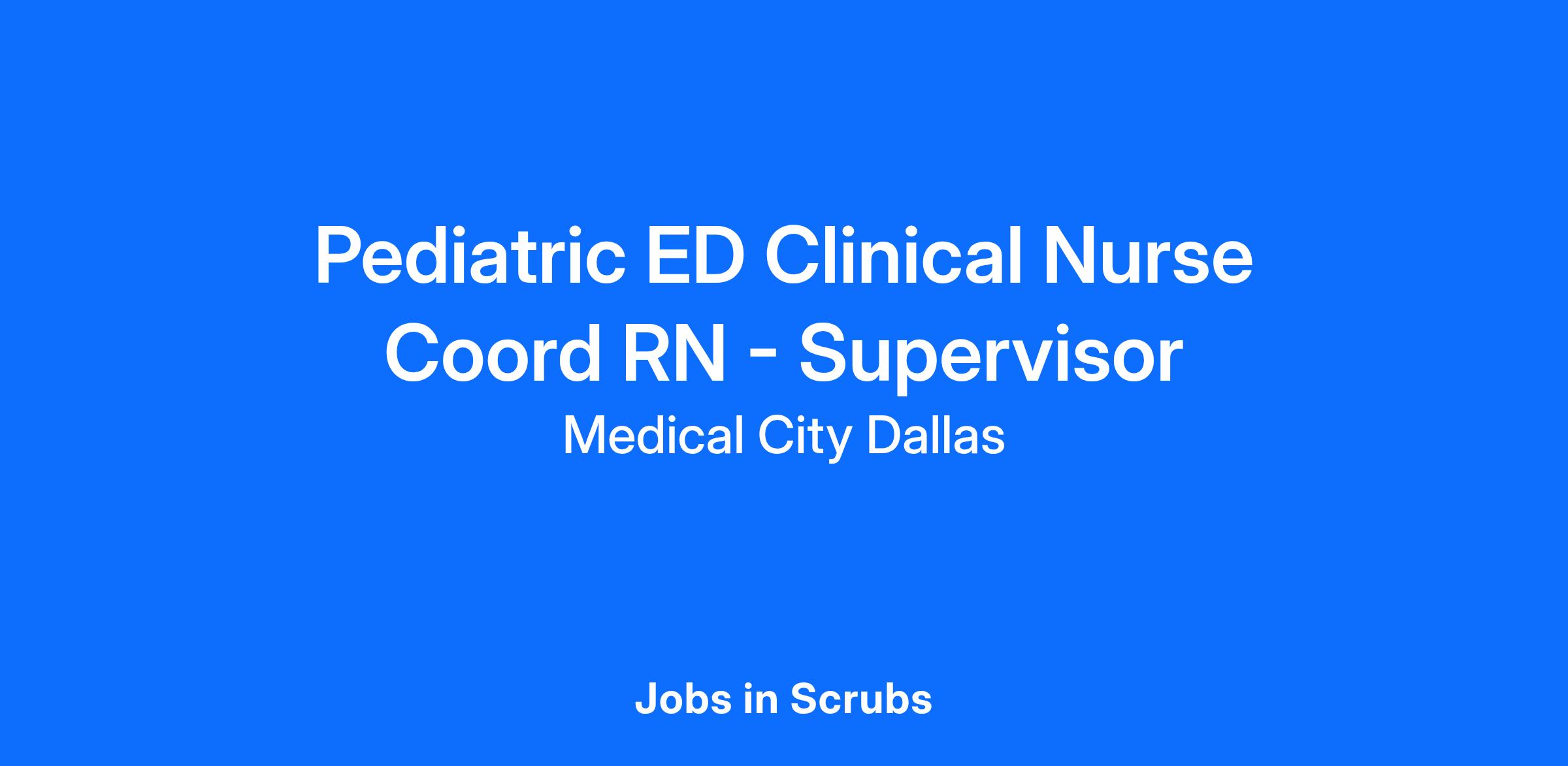 Do you want to be appreciated daily? Our nurses are celebrated for being on the front line, empathetic for patients. At Medical City Dallas our nurses set us apart from any other healthcare provider. We are seeking a Pediatric ED Clinical Nurse Coord RN - Supervisor to join our healthcare family.