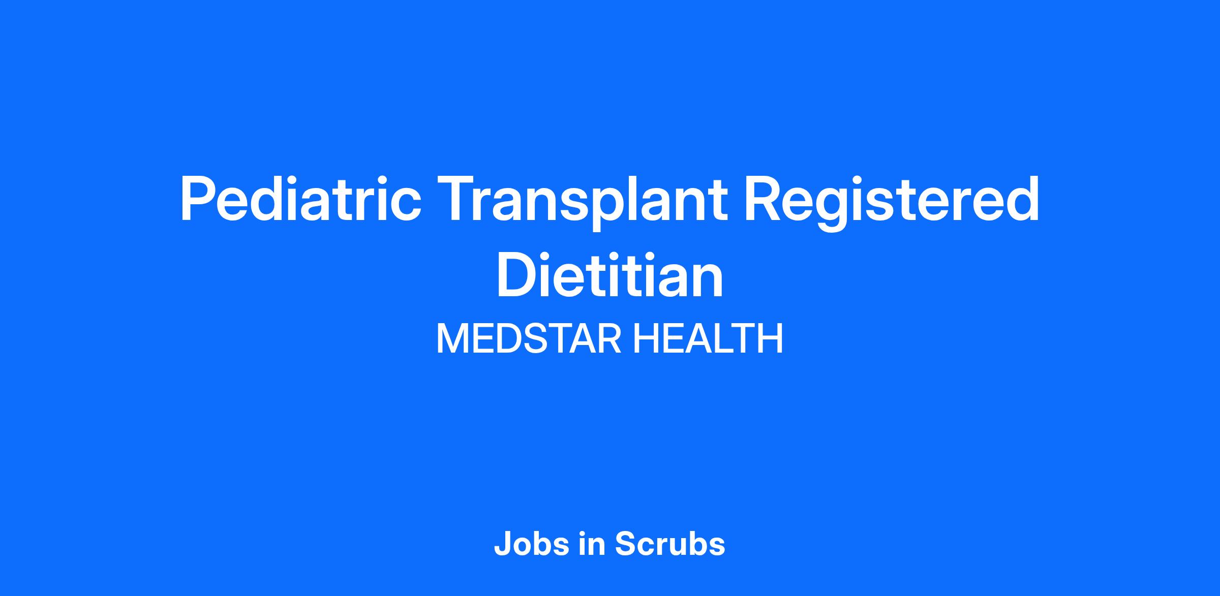 General Summary of Position Job Summary: MedStar Health has a unique opportunity for a Transplant Coordinator/Registered Dietitian to join our Pediatric Small Bowel Transplant team at MedStar Georgetown University Hospital. As a Transplant Coordinator, you will serve as a key contact, advocate, and member of the patient’s transplant team. Primary Duties: Qualifications: