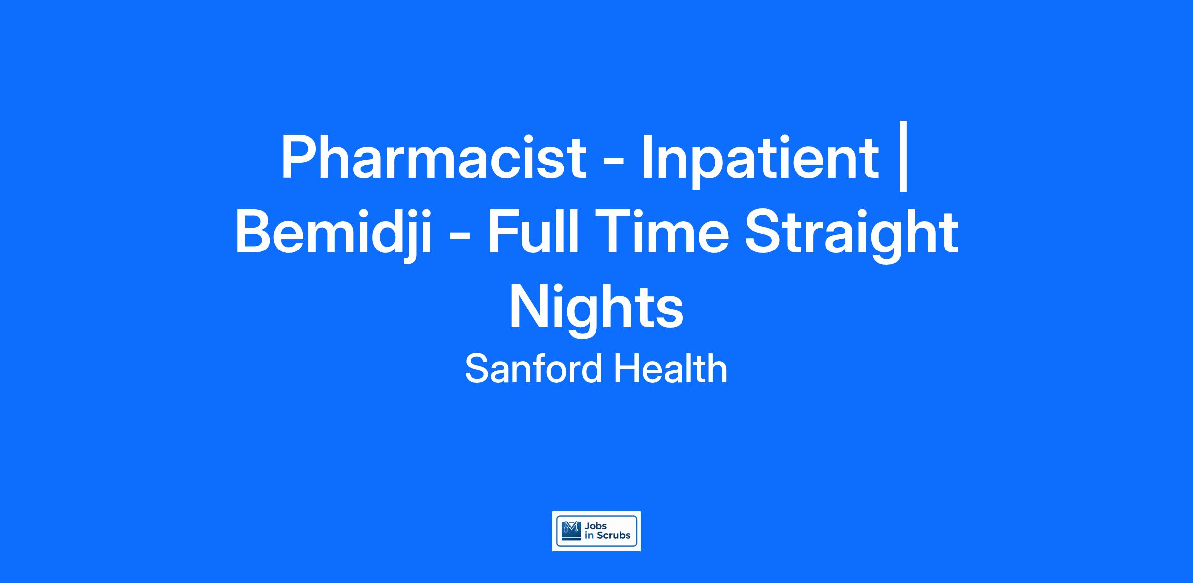Pharmacist - Inpatient | Bemidji - Full Time Straight Nights