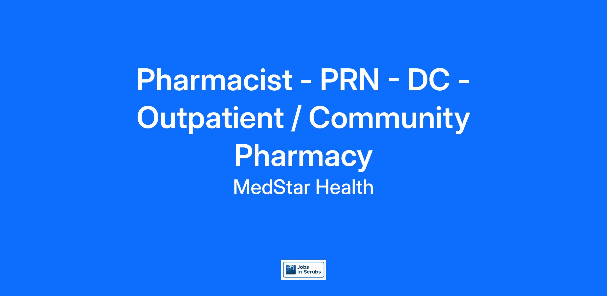 Pharmacist - PRN - DC - Outpatient / Community Pharmacy