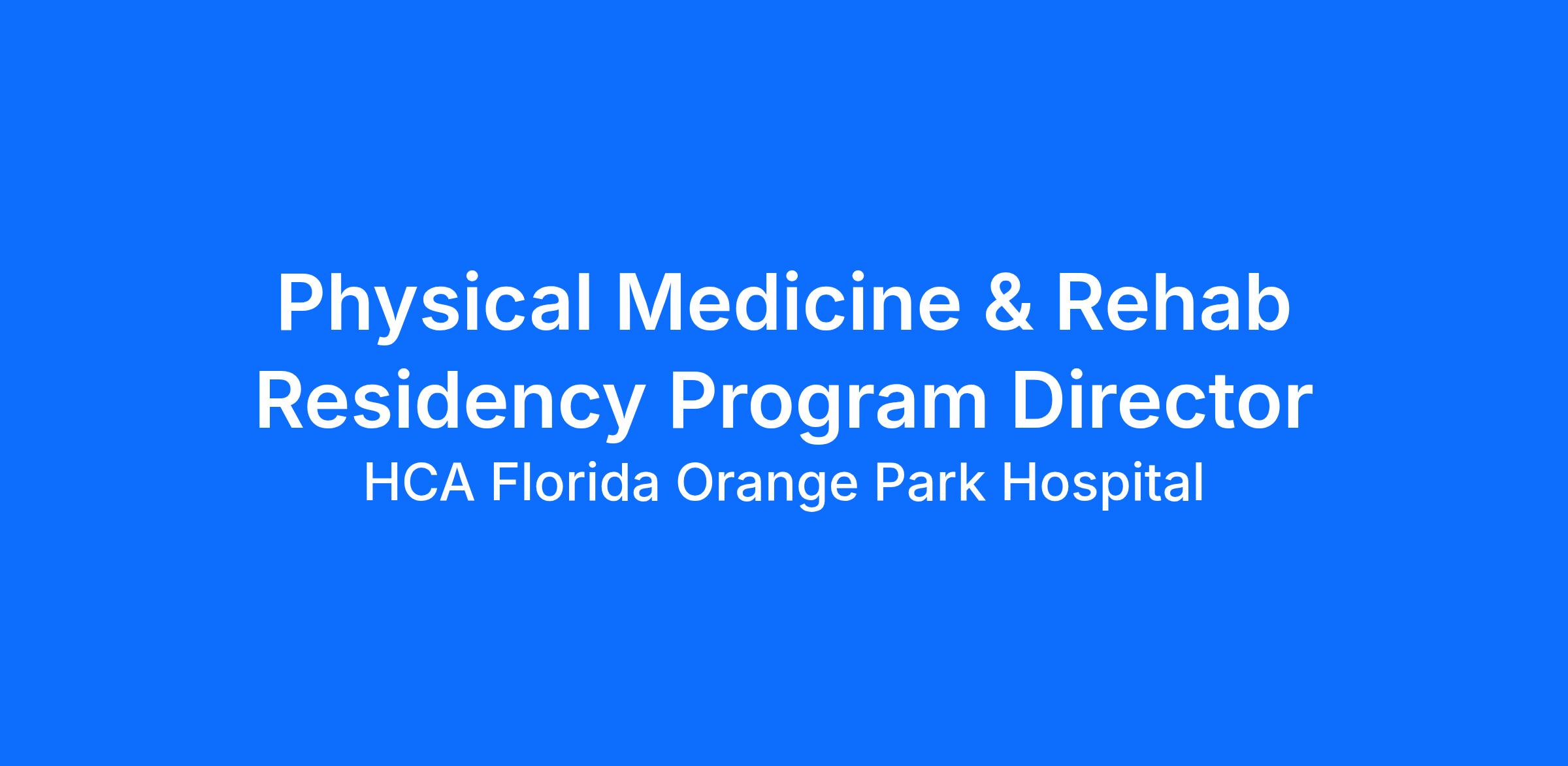 HCA Florida Orange Park Hospital in Jacksonville is seeking a physical medicine and rehabilitation physician to help build and lead a brand-new PM&R residency program, slated to start summer 2026.