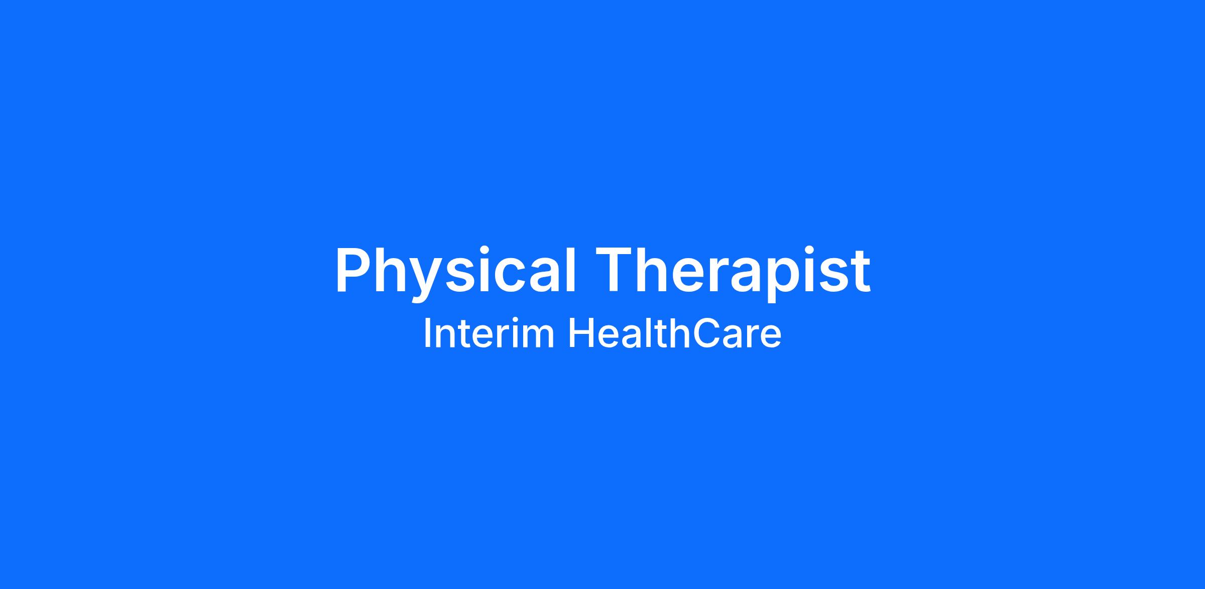 As a Physical Therapist you will be called to care when you're needed most. As part of Interim HealthCare, you'll support a full range of patient services to bring comfort and dignity to our clients.