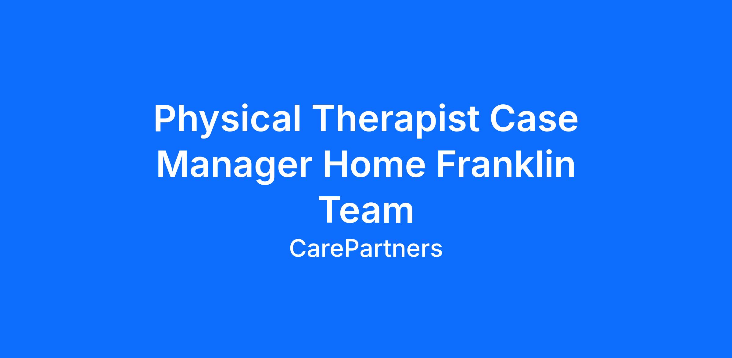 Experience the HCA Healthcare difference where colleagues are trusted, valued members of our healthcare team. Grow your career with an organization committed to delivering respectful, compassionate care, and where the unique and intrinsic worth of each individual is recognized. Submit your application for our Home Health Case Manager- Physical Therapy opening with CarePartners today and find out what it truly means to be a part of the HCA Healthcare team.