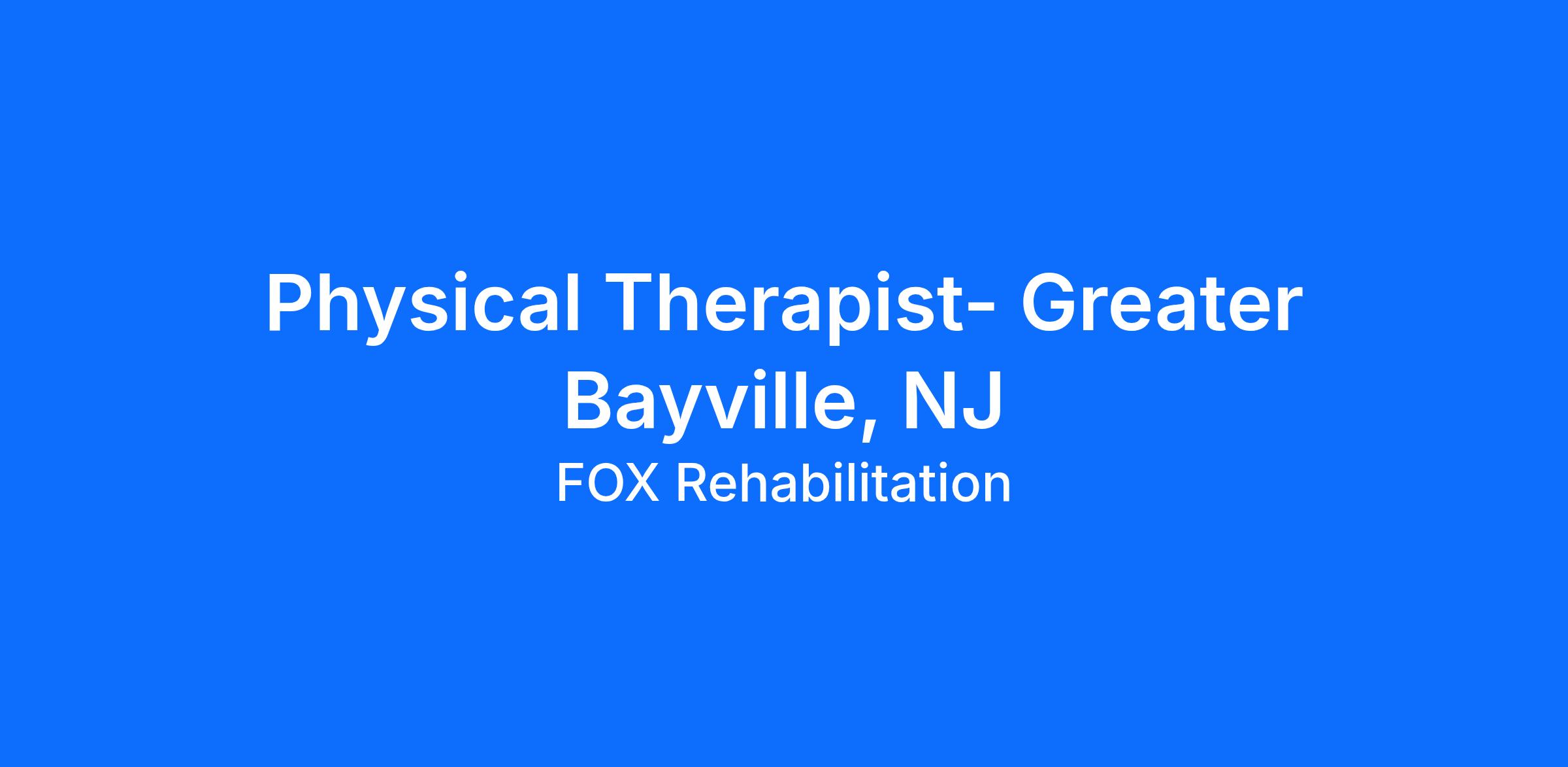 Our team is growing, and we’re looking for top-caliber full-time Physical Therapists to join FOX Rehabilitation. We have opportunities in: