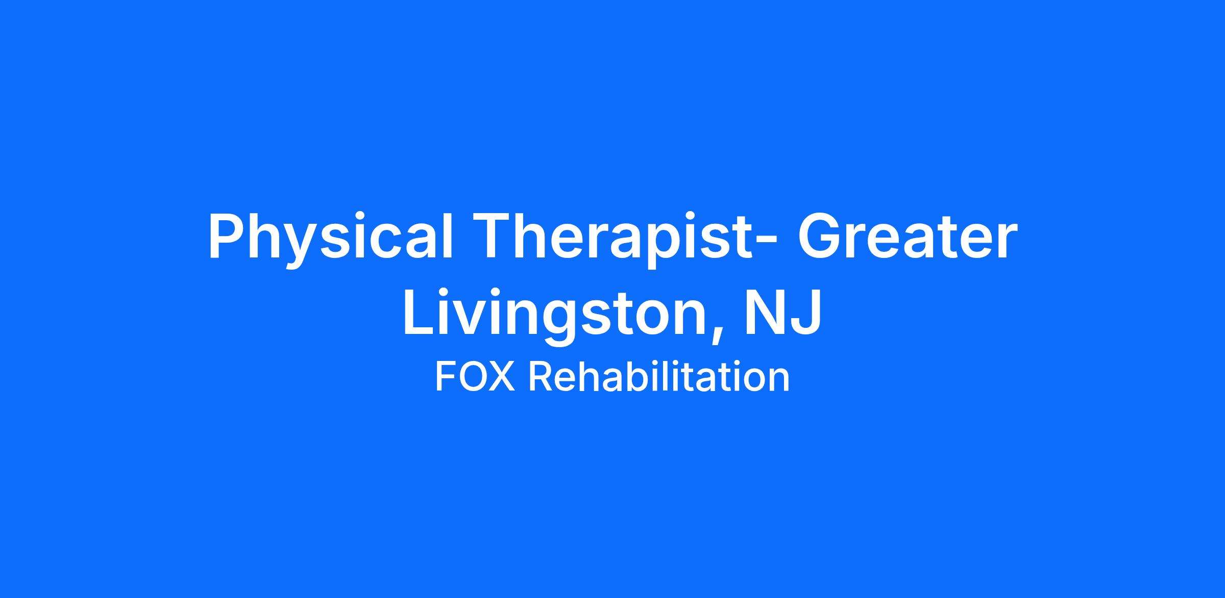 Physical Therapist- Greater Livingston, NJ