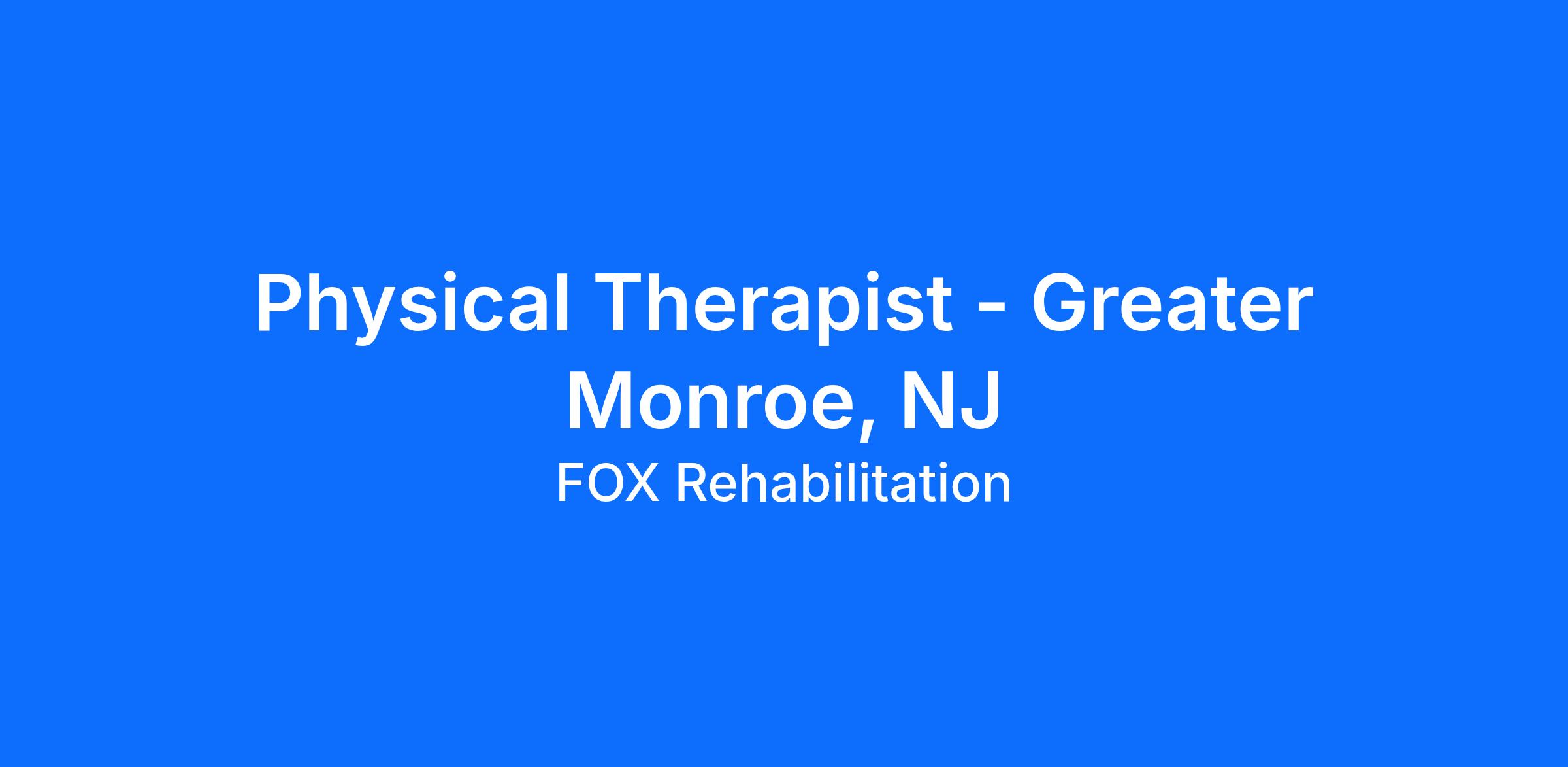 Physical Therapist - Greater Monroe, NJ