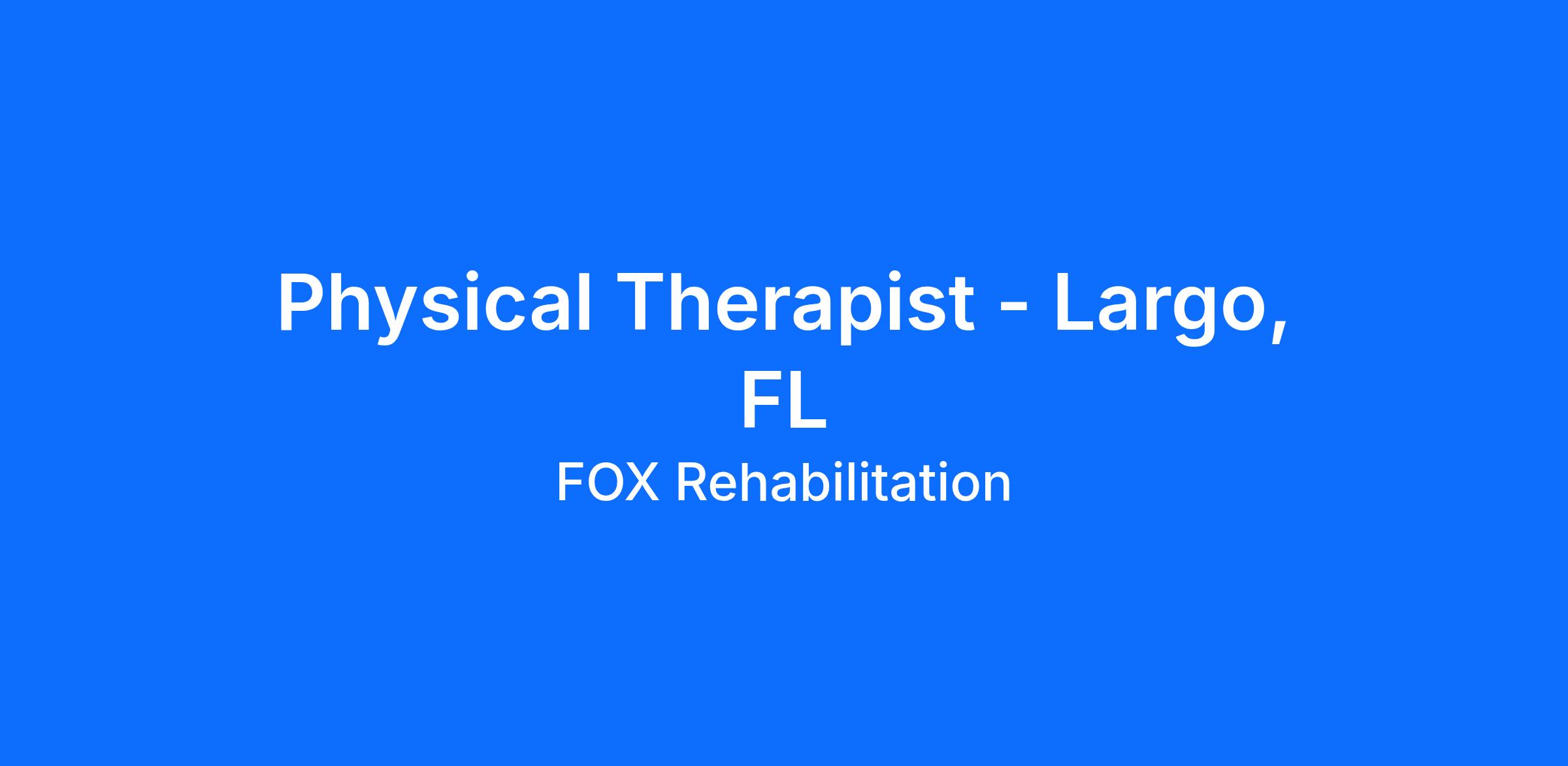 Our team is growing, and we’re looking for top-caliber Physical Therapists to join us in Largo and surrounding locations in Florida.