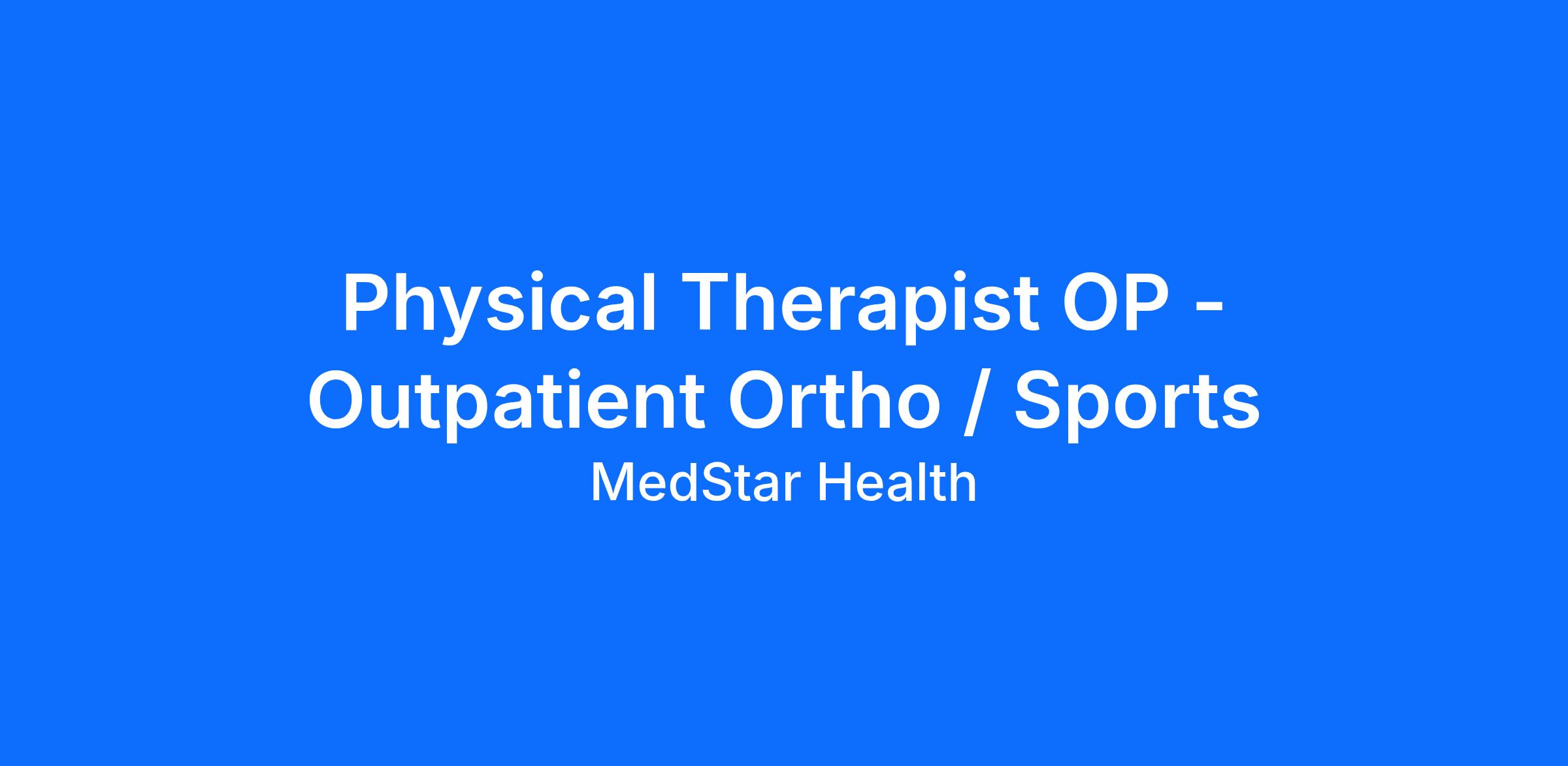 Physical Therapist OP - Outpatient Ortho / Sports