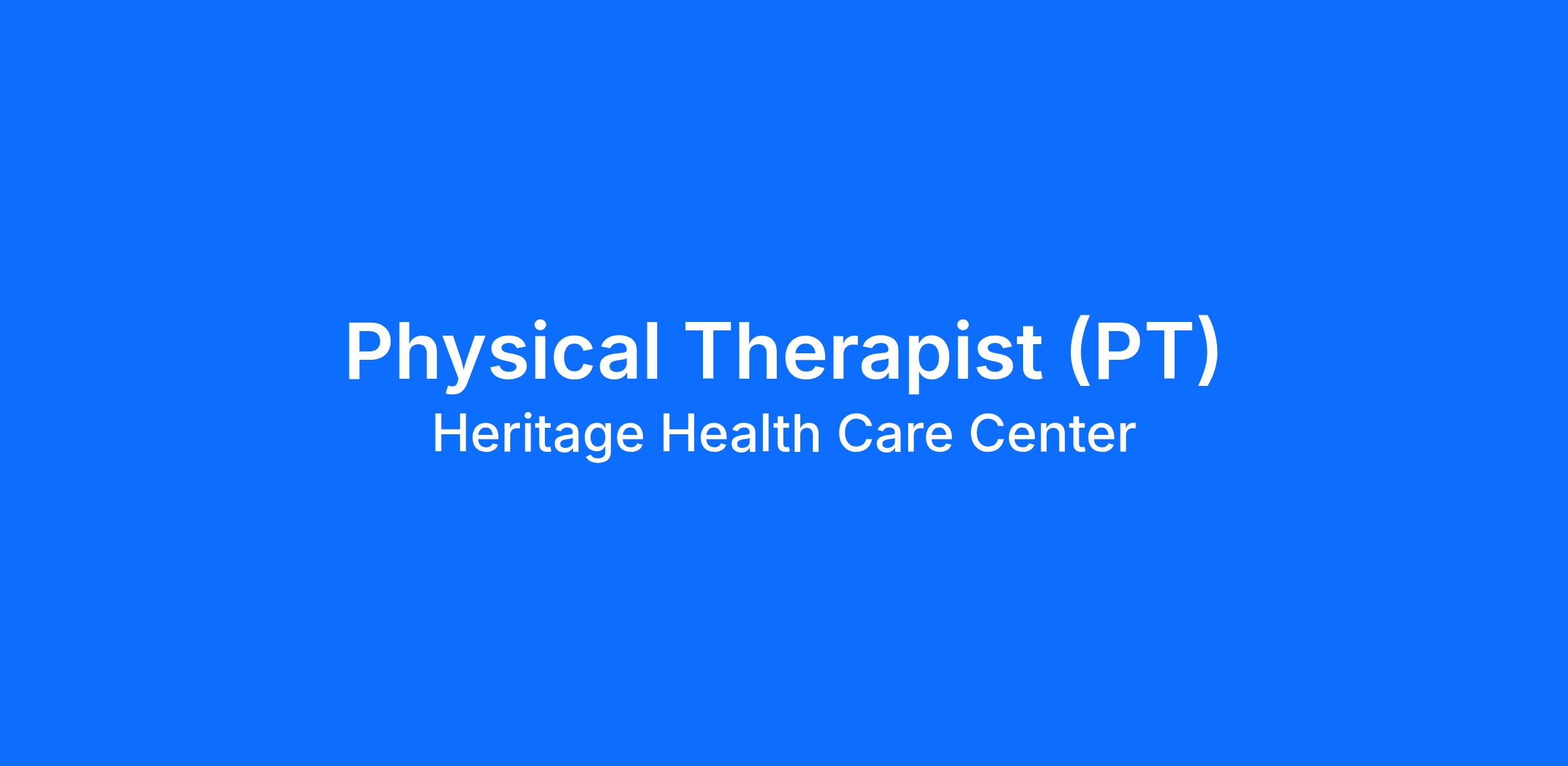 Heritage Health Care Center- Now hiring Physical Therapist $10K Sign On Bonus for FT.