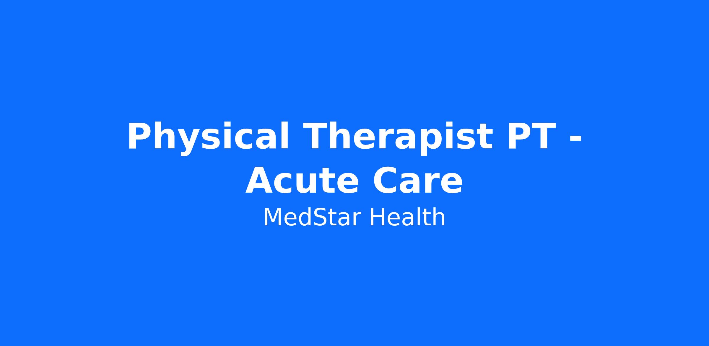 MedStar Health is looking for a Physical Therapist (Acute Care) to join our team at MedStar Union Memorial Hospital!