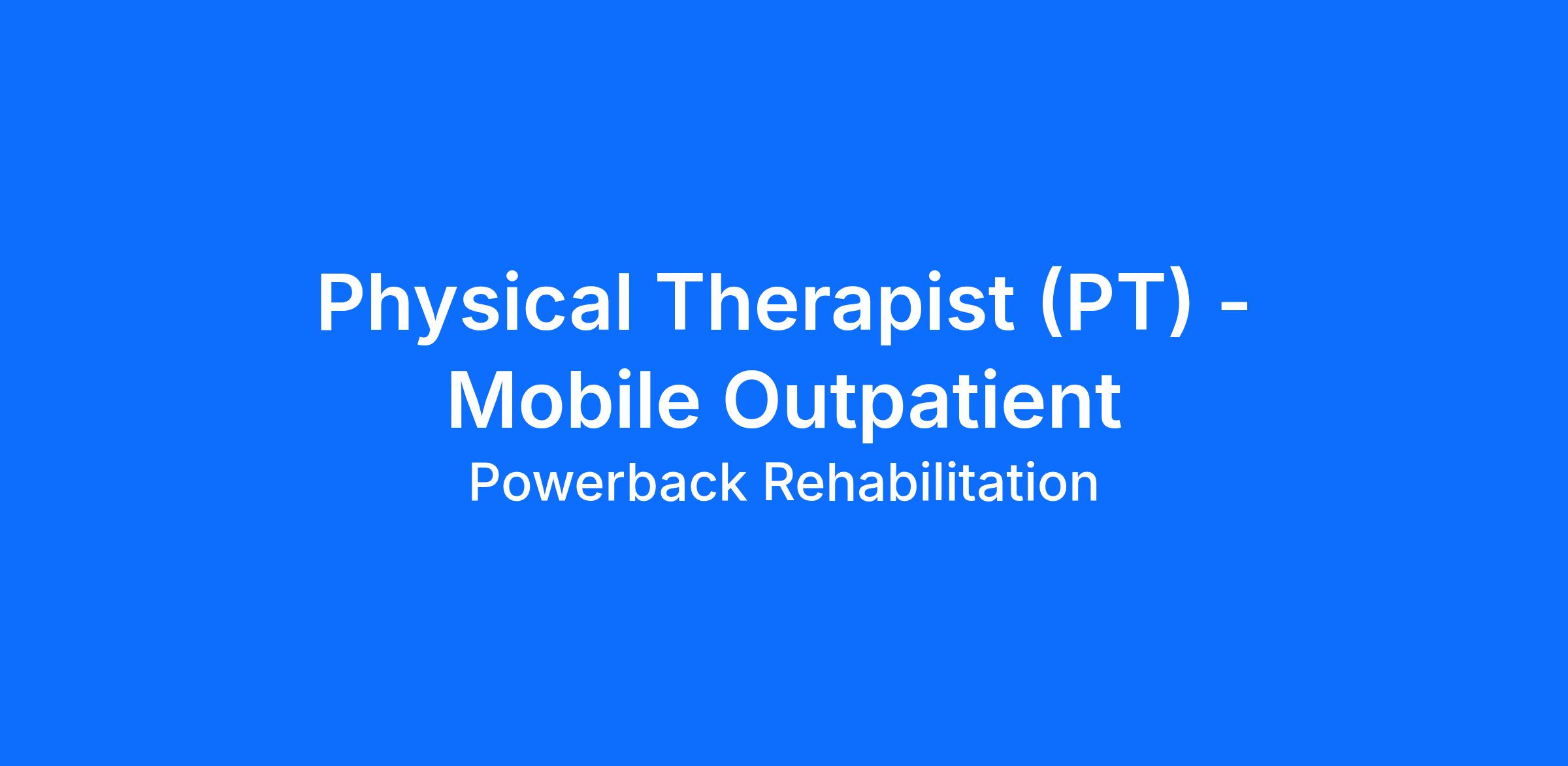 Physical Therapist | Full time | Mobile Outpatient Therapy