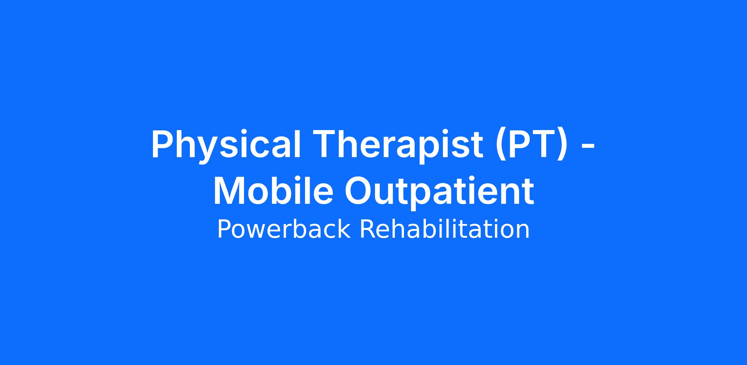 The Physical Therapist will primarily provide outpatient rehabilitation services in an in-home setting for the older adult population. The in-home setting could be a patient's private residence or in a patient's room in an independent living facility. Powerback Rehabilitation To You allows the Physical Therapist to evaluate and treat in the most functional environment which is the patient's home. The Physical Therapist assesses the need for, develops, and delivers physical therapy programs to facilitate rehabilitation. The Physical Therapist identifies the need for and makes referral(s) to other disciplines to address the comprehensive needs of patients. They implement individualized therapy programs designed to restore, reinforce, and enhance performance. In addition, the Physical Therapist instructs, educates and trains patients and caregivers in those skills and functions essential for promoting independence and productivity, in order to diminish or correct pathology. They direct activities to promote and maintain health. This position provides a flexible schedule and work environment in various settings.