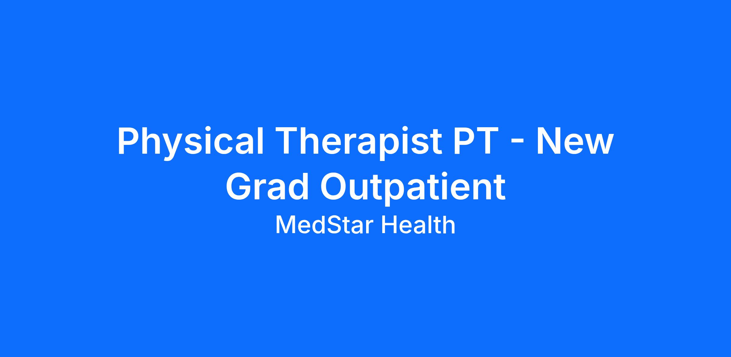 MedStar Health Physical Therapy is looking for new and recent physical therapist graduates to join the largest non-profit, hospital-based, outpatient network in the region. Open positions in Washington, D.C., Maryland, and Northern Virginia.