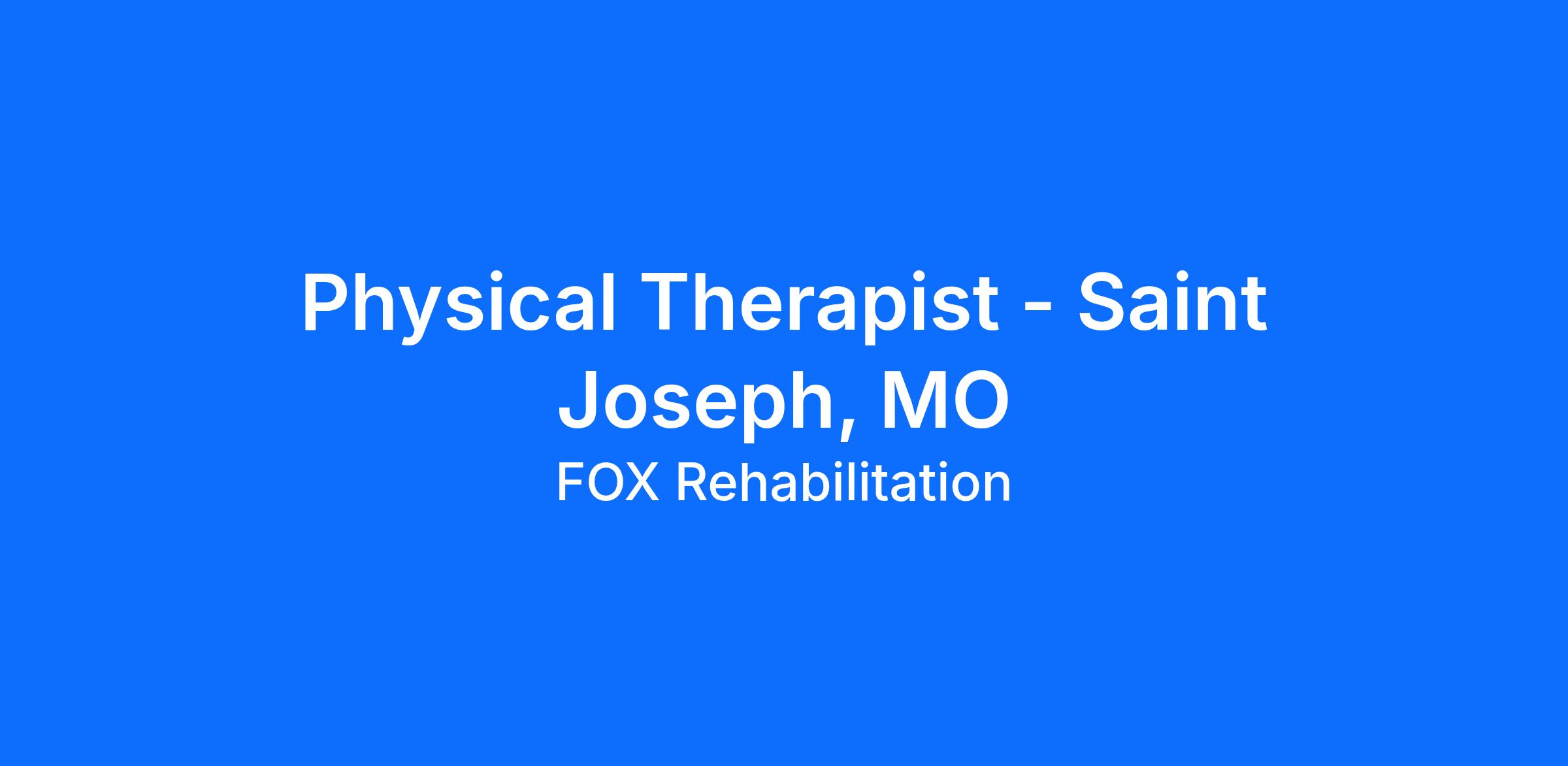 Our team is growing, and we’re looking for top-caliber Physical Therapists to join us in Saint Joseph and surrounding locations in MO.